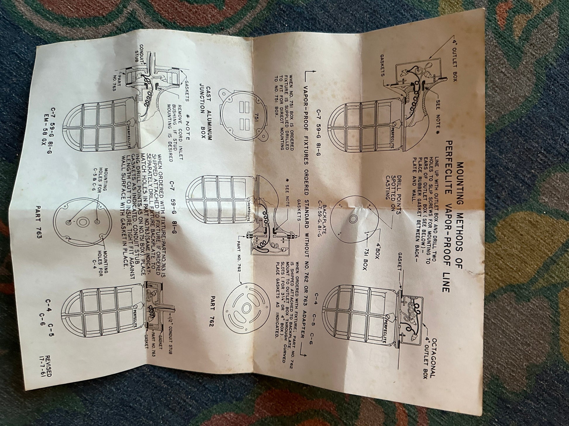1950s MCM PERFECLITE Aluminum Industrial Vapor-Proof, Vapor proof Wall Mount Cage LightUsed condition. Made in Cleveland Ohio, and HIGH QUALITY like the Appleton, RAB, Killark, and Crouse-Hinds style Cage Lights. Original instructions are included.This has been untested.Glass globe / shade is included.Measures 12.75” long (overall) and projects 6” off the wall