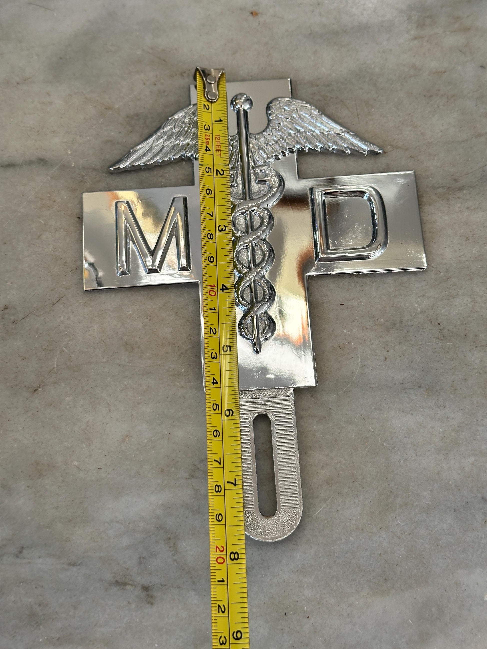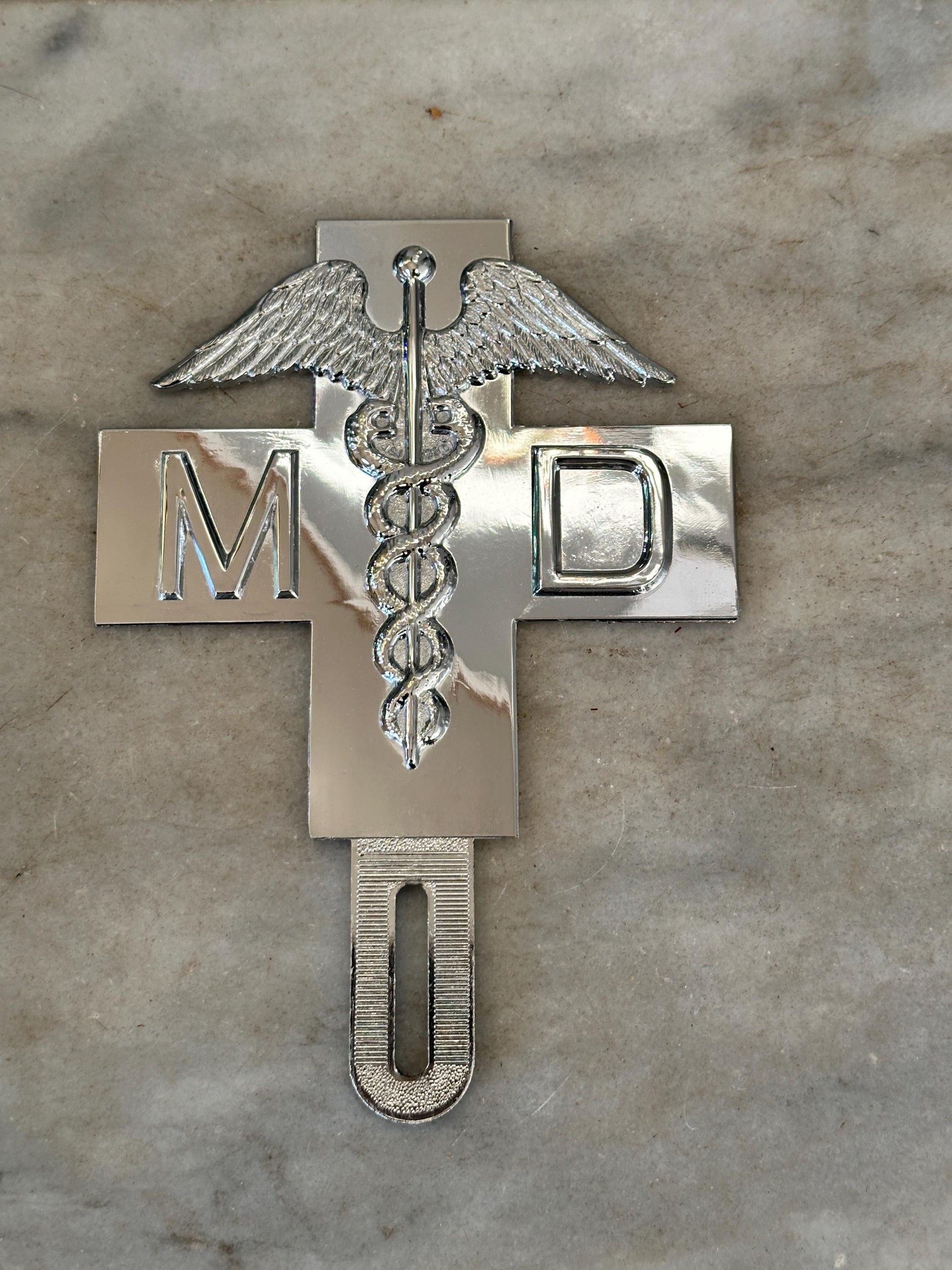 1960s Chrome MD Doctor License Plate Badge – New Old Stock Car Emblem