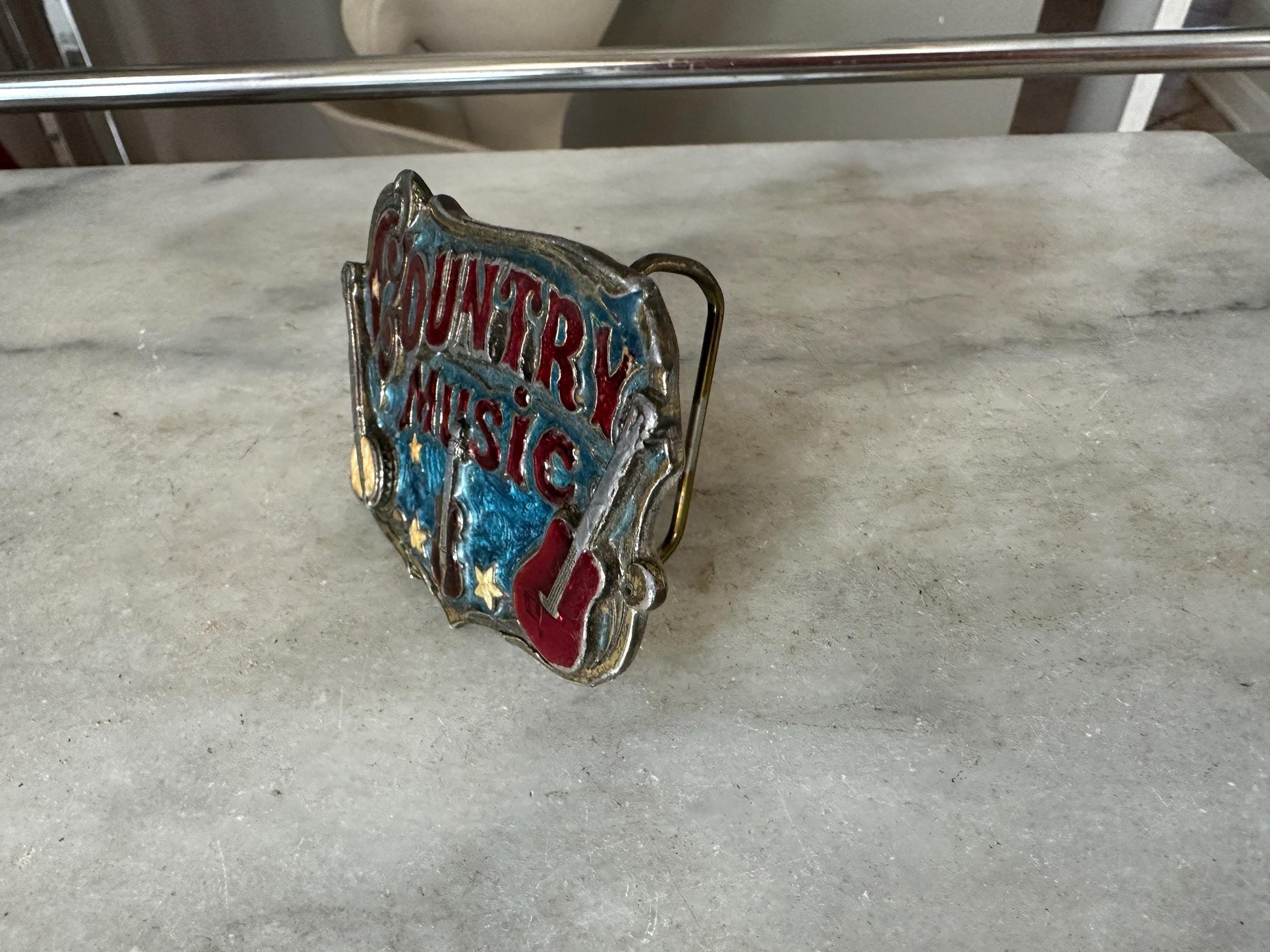 1982 Enameled Country Music Buckle ~ Serial Number H919 ~ The Great American Buckle Co U.S.A. Copyright 1982 Made in the U.S.A.