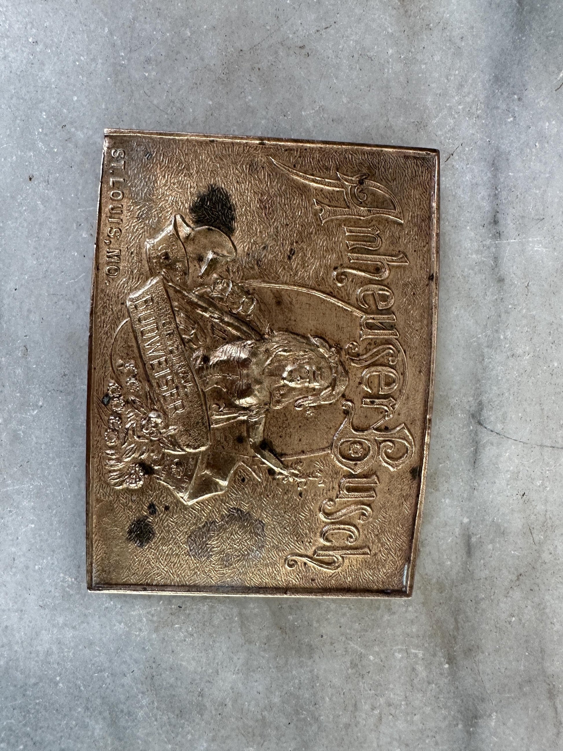 Anheuser Bush Original Budweiser Lewis Buckets Chicago Vintage 3.5" X 2.5"in good vintage condition with some age related patina. Could use a good polish. Selling as found.A wonderful gift for a Budweiser fan. Perfect to add to a belt buckle collection..