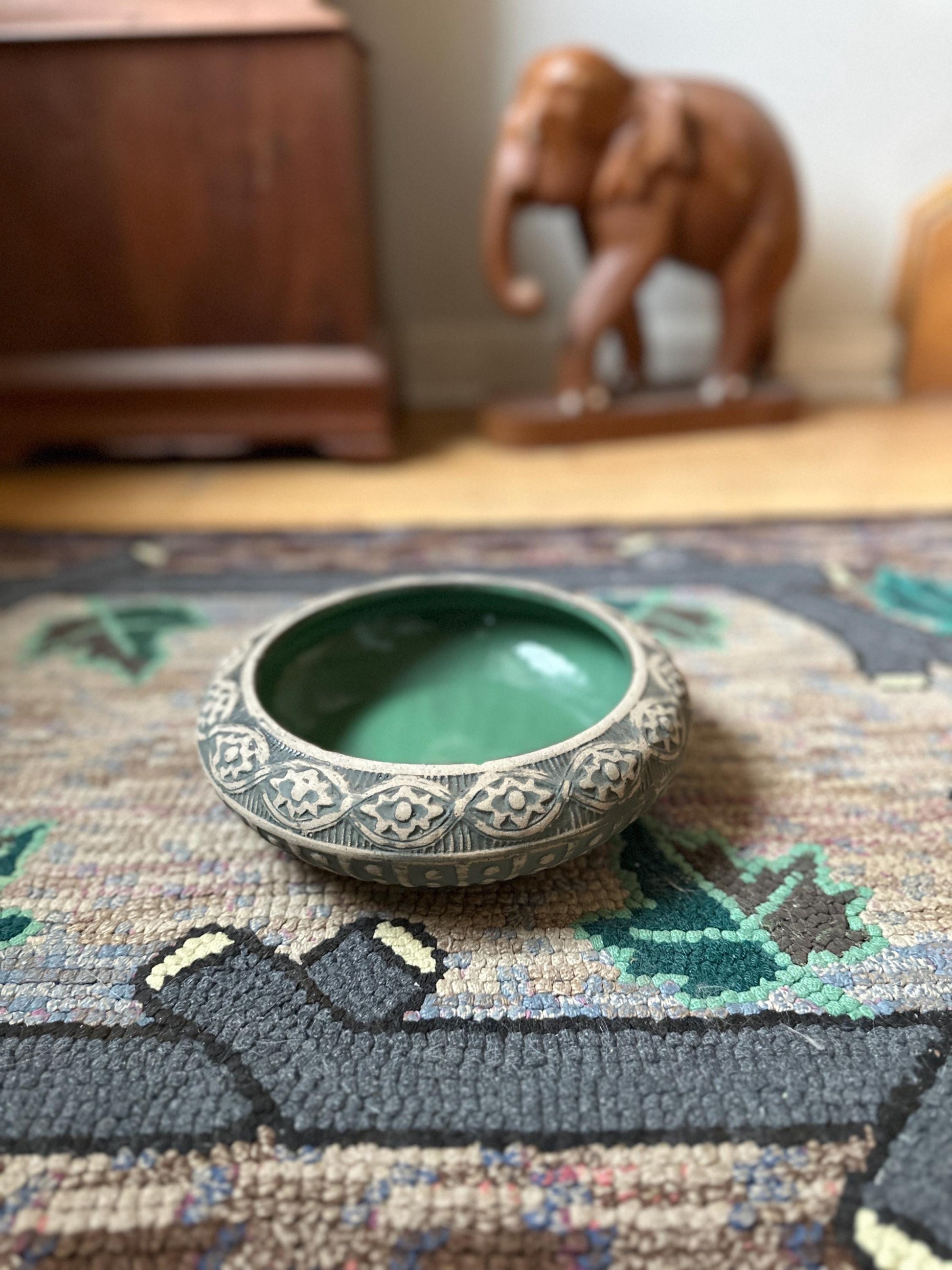 Antique Red Wing Pottery Planter: 1920s Arts & Crafts Green Bowl