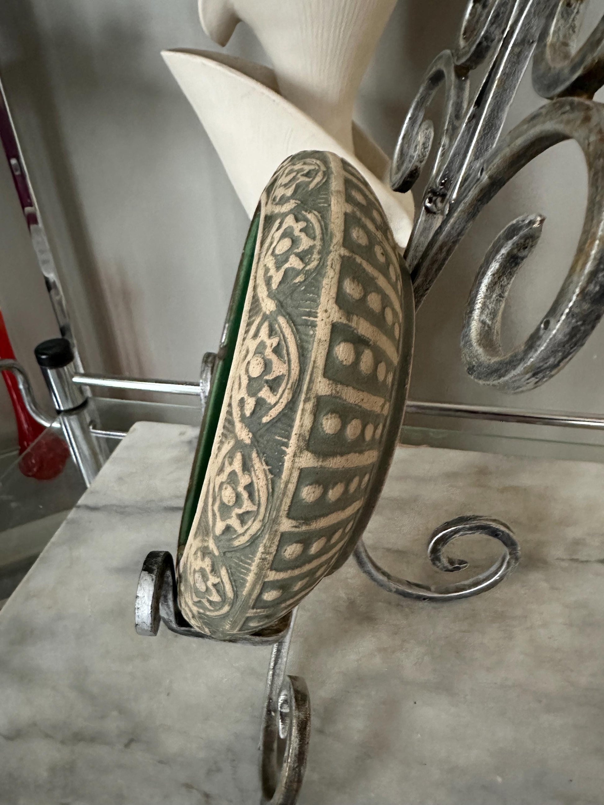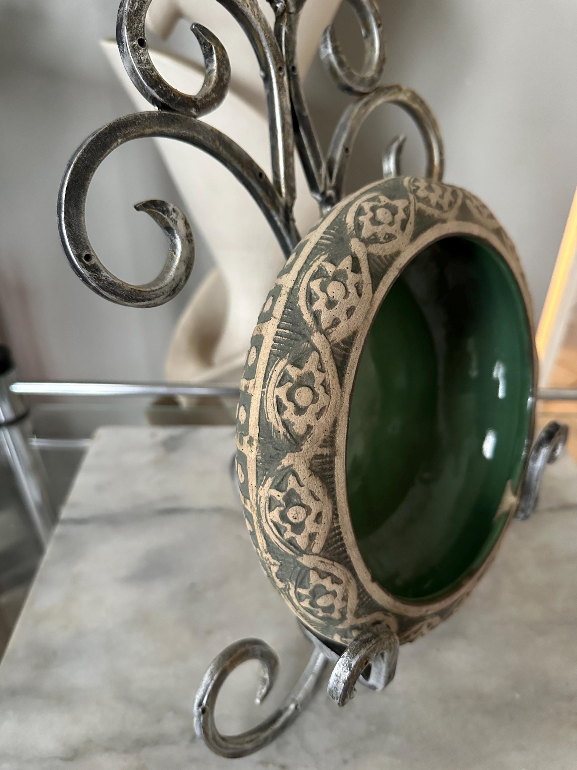 Antique Red Wing Stoneware "Brush Ware" Arts & Crafts Enamel Green Bowl. Research shows circa 1920-1930 Photos are of actual item listed. This piece is exquisite.