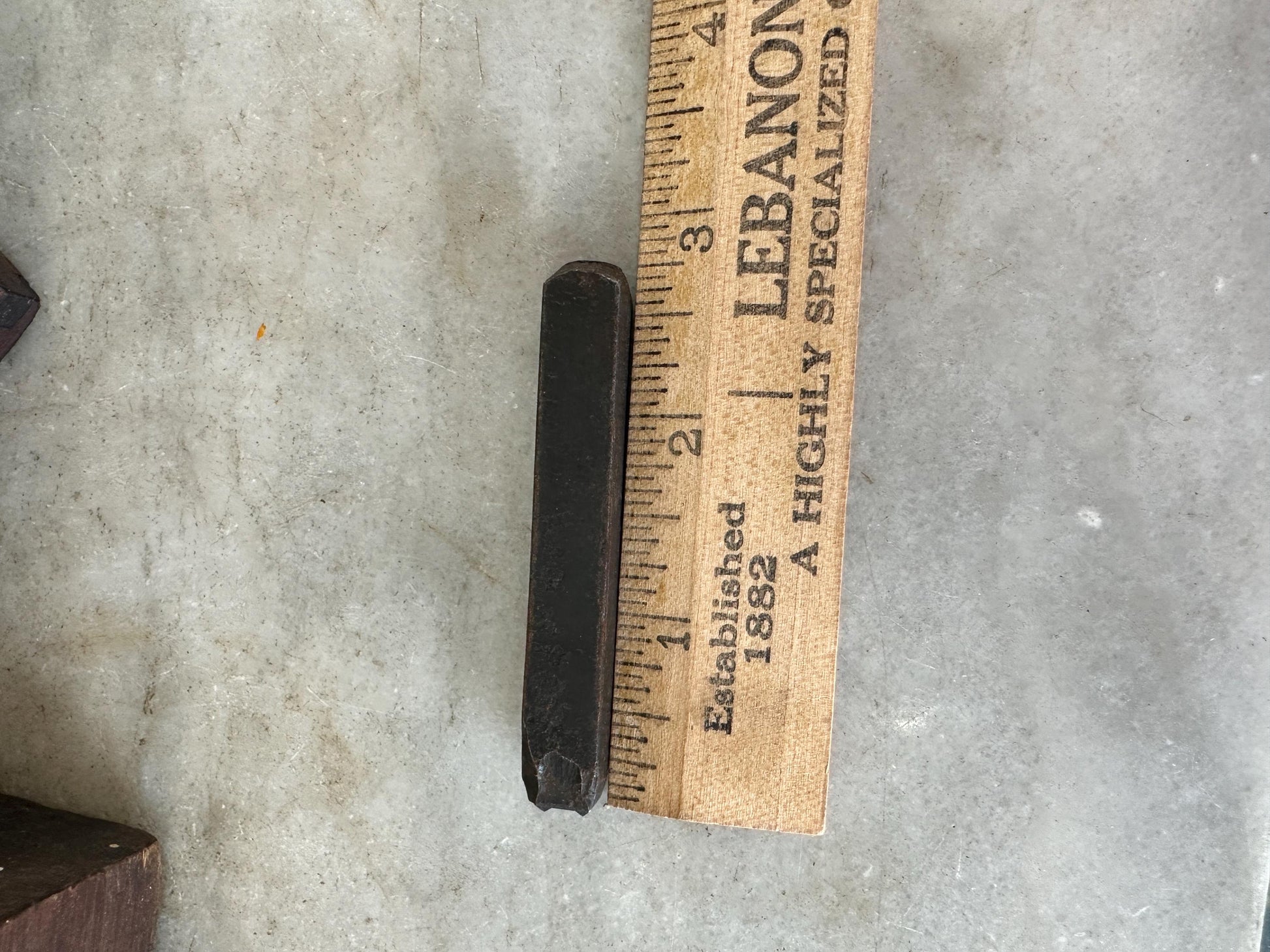 Antique Steel Number Stamp Punches Set in Wood Case - Steel Number Punches - Antique Hardware - Farm Hardware- Vintage Number Stamps- StampsSet includes 9 punches - Numbers 0 thru 9. Comes with original wooden case, has amazing vintage patina, dovetailed edges and stamp marks on top. (6 and 9 are the same punch) Punches can be used on - Wood, Leather, clay.Measures:1- Steel Stamps: 2 3/4 inches long overall, 1/4 inch square, unmarked, Numbers are 1/4 inch2- Wooden Box: 4 1/4 inches long, 3 3/8 inches high with the lid on and 2 1/8 inches wide, unmarkedIn very good antique condition.These are perfect to display with your primitive or industrial decor.Great gift for a graphic designer.Would be wonderful for any work or project where you need to personalize or be creative.