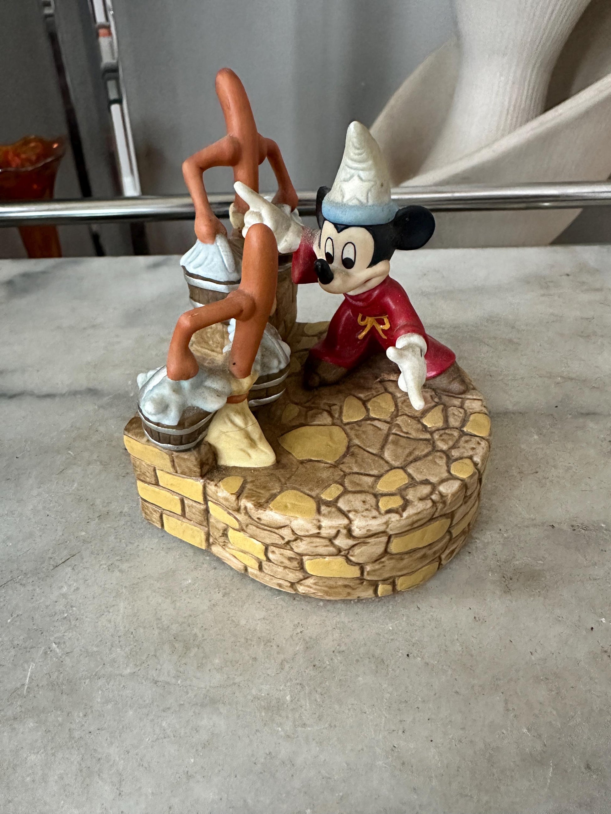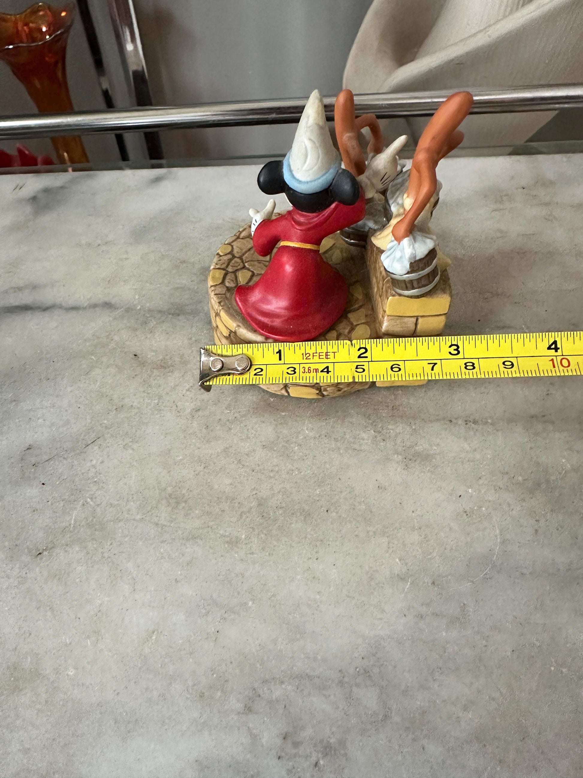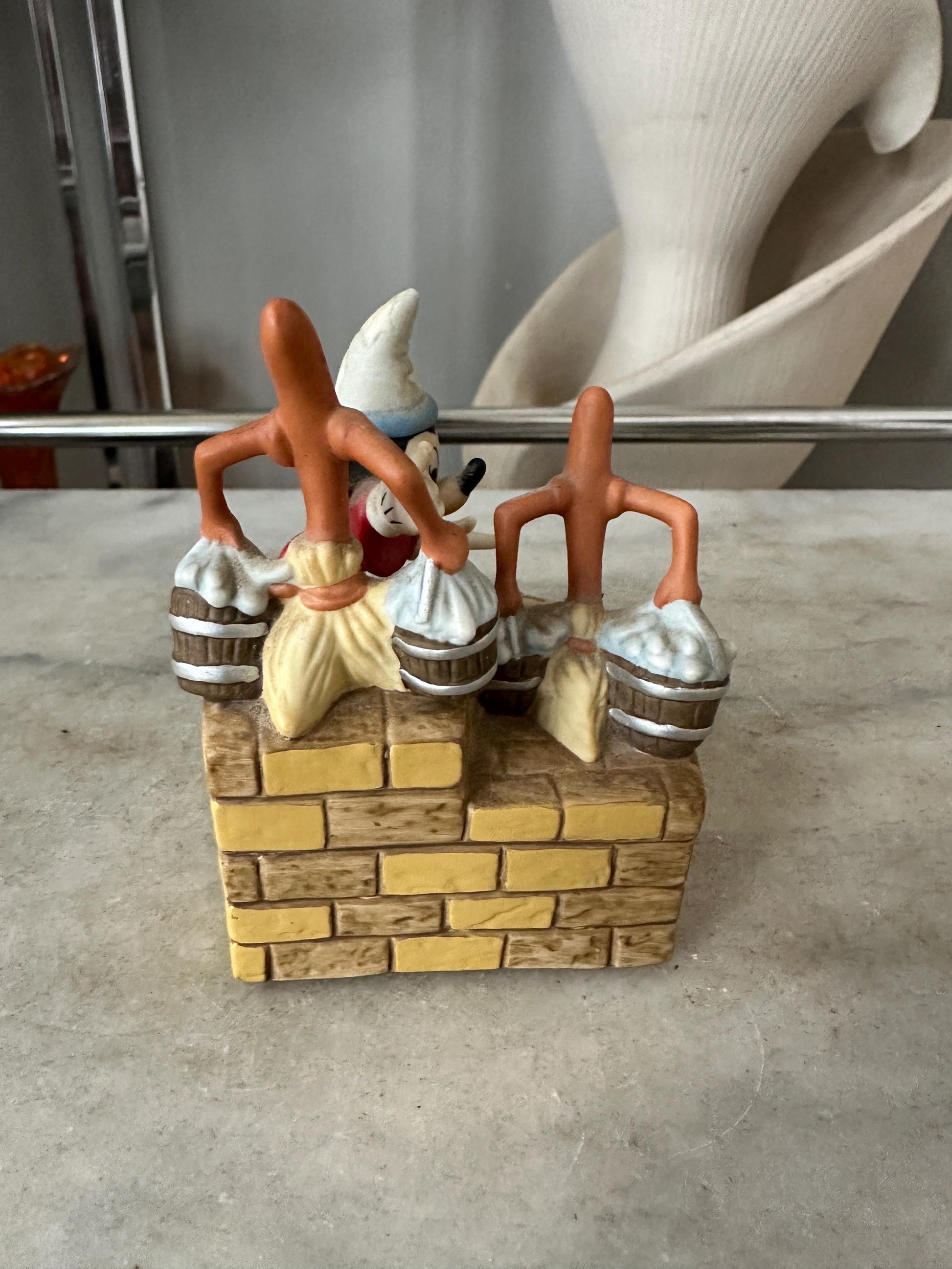 Disney Sorcerer Apprentice Music Box – Fantasia Mickey Mouse & Brooms – Ceramic – 3.5” Tall – Made in Taiwan – Vintage 1980's