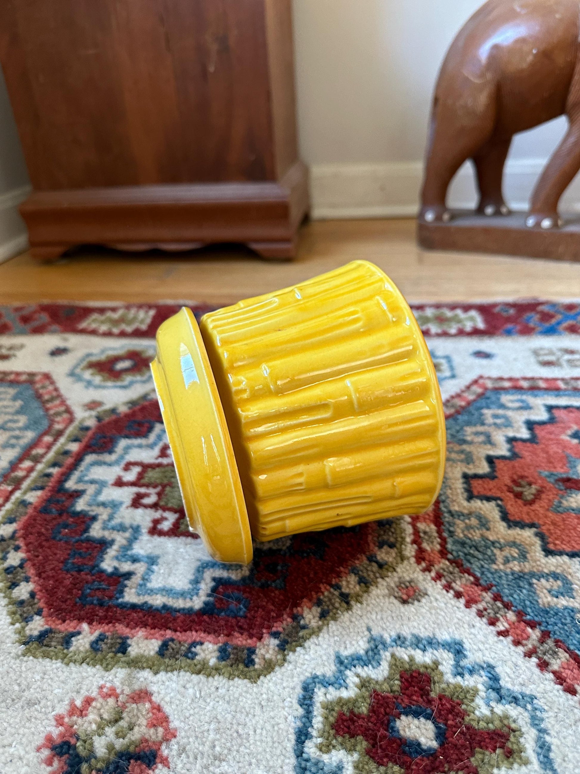 McCoy 1960s Vintage Art Pottery Yellow Bamboo Flower Pot Saucer Planter 0373