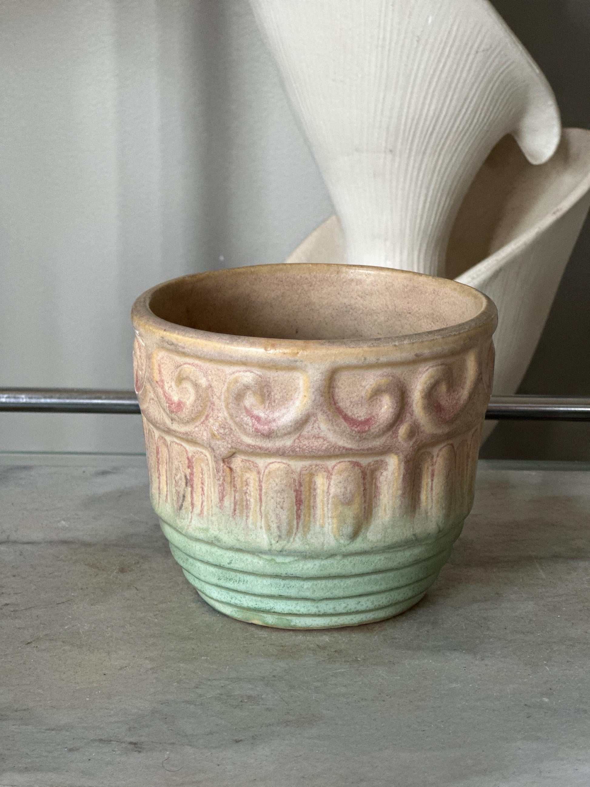McCoy 6 1/4" Pottery Planter Jardinere Soft Pink Tan Green Early Shield 15 Mark