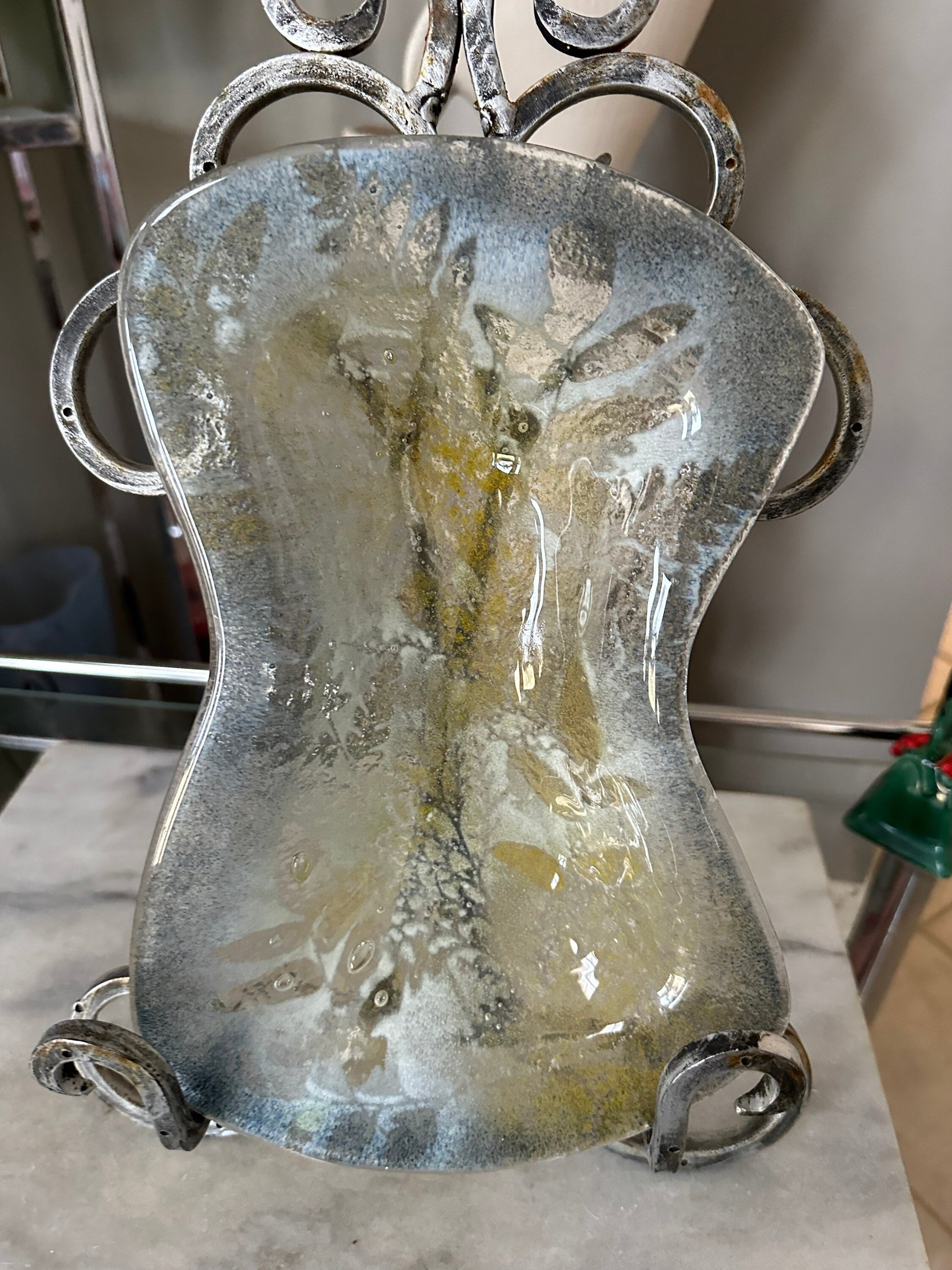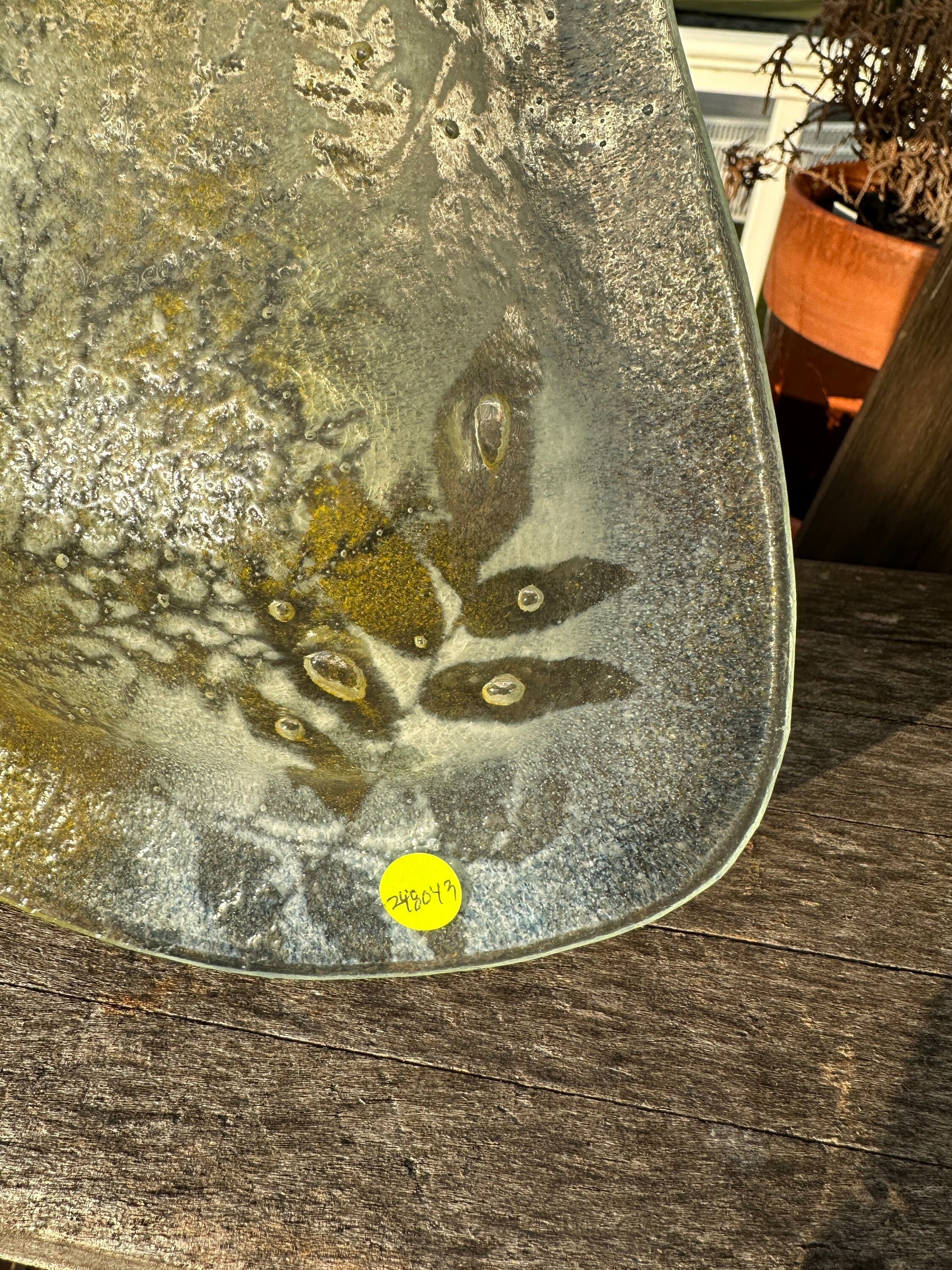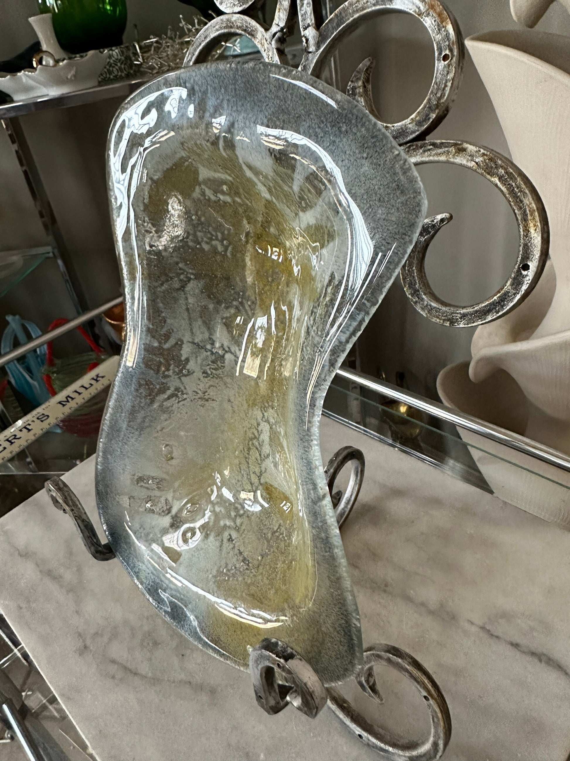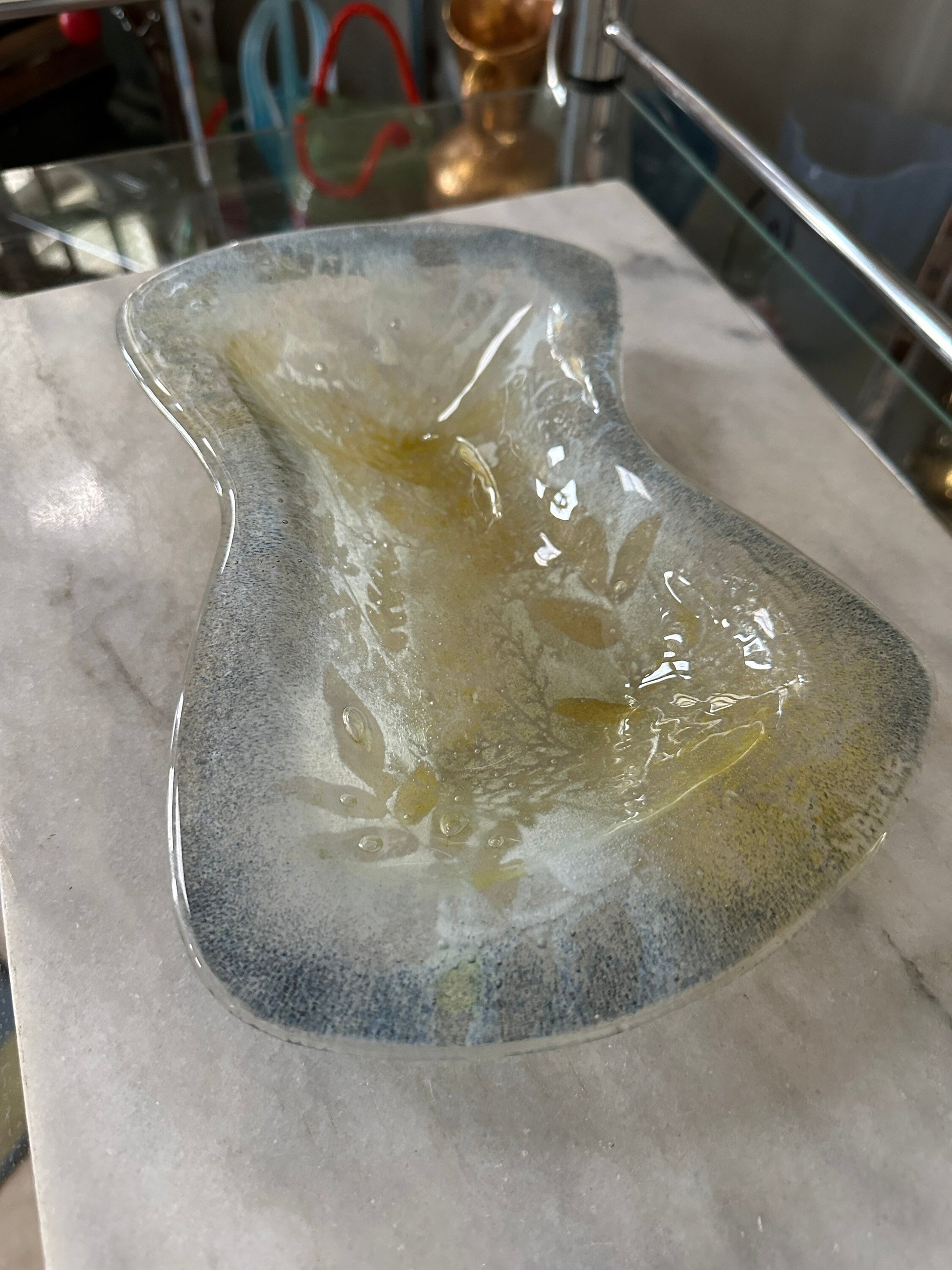 Mid Century Modern Fused Art Glass Abstract - Frosted Leaves - 11 x 7