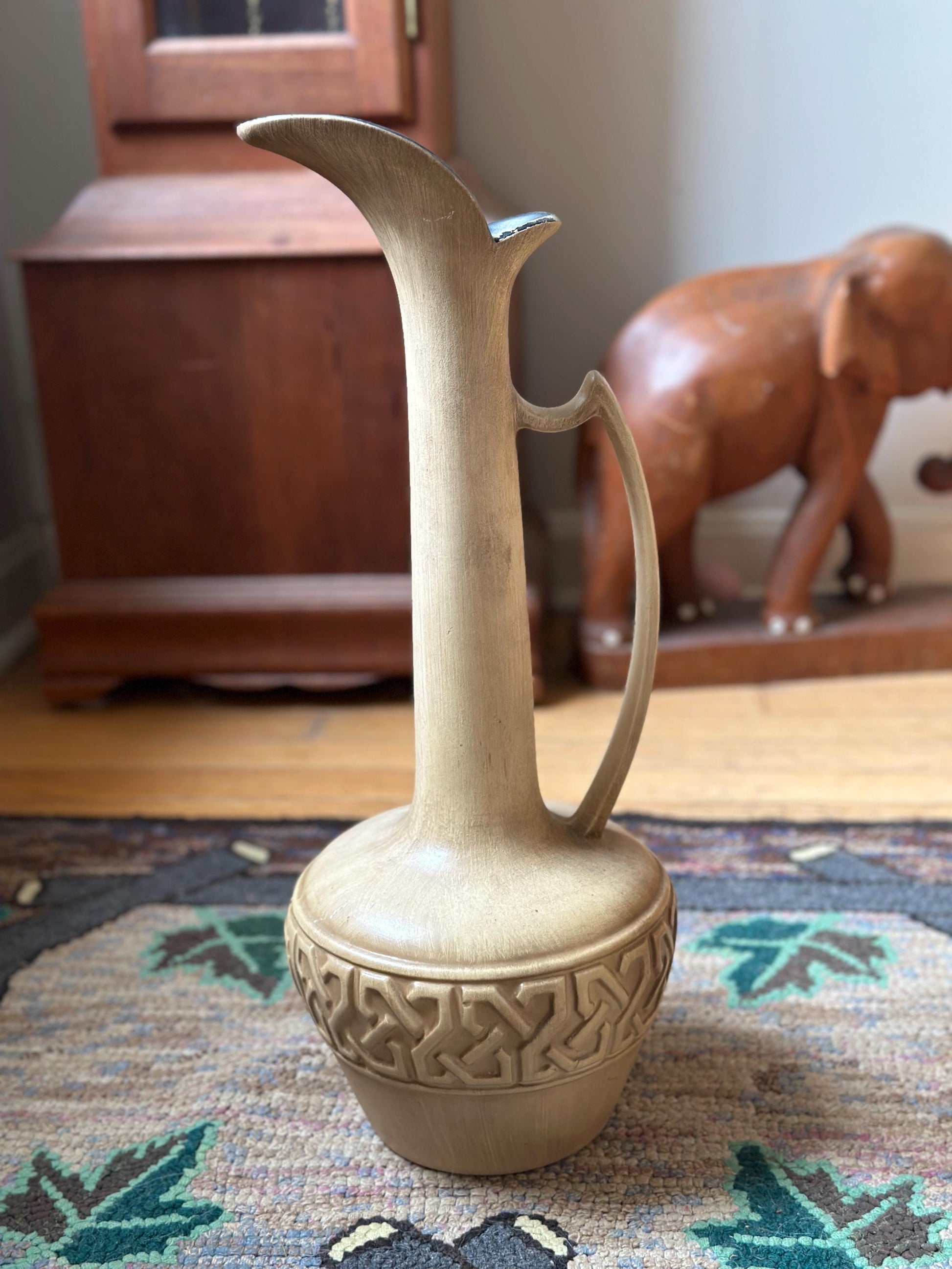 Mid Century Modern Haeger Vase: Large Gold Pottery Pitcher, 18 inch Ewer