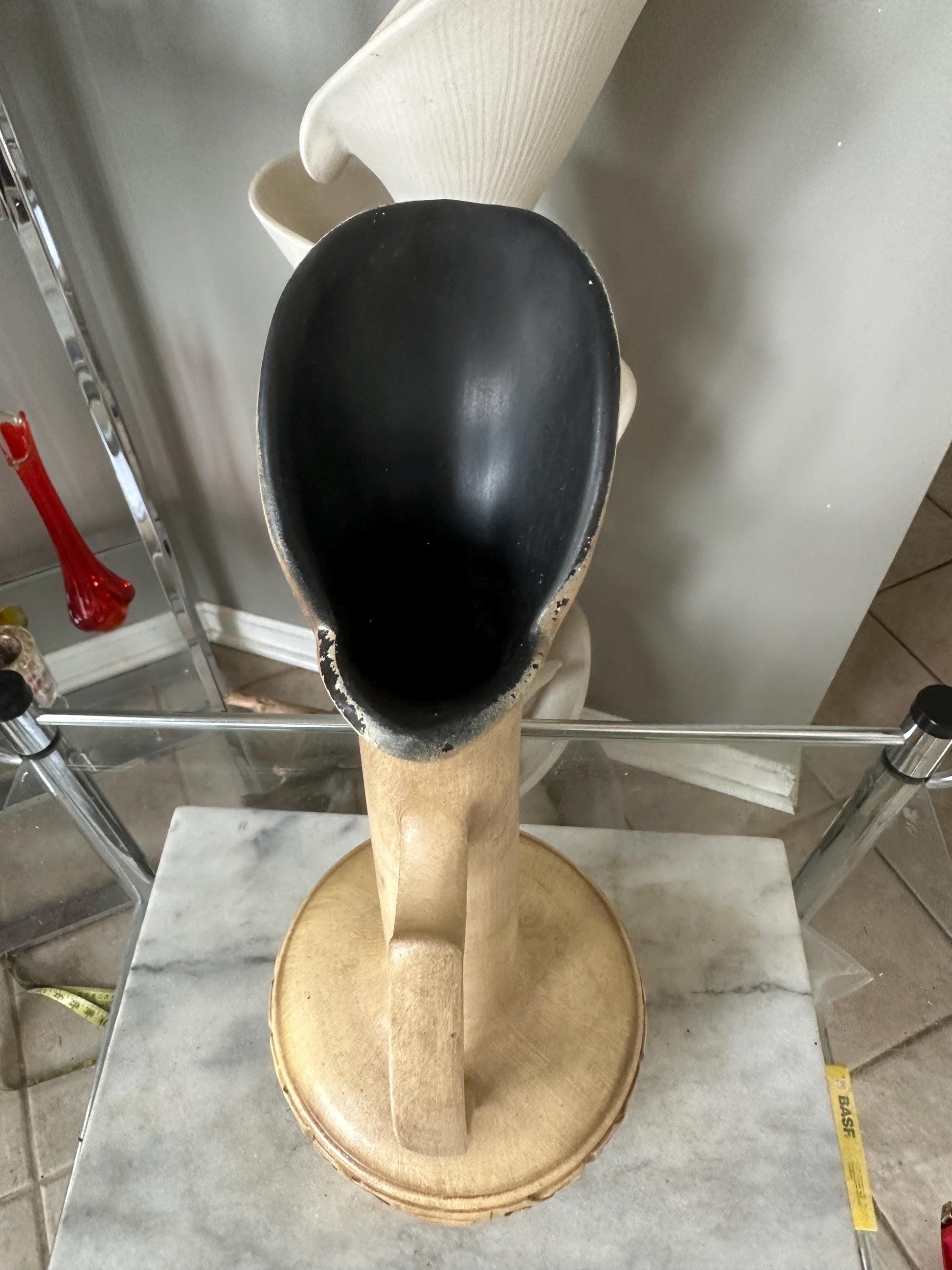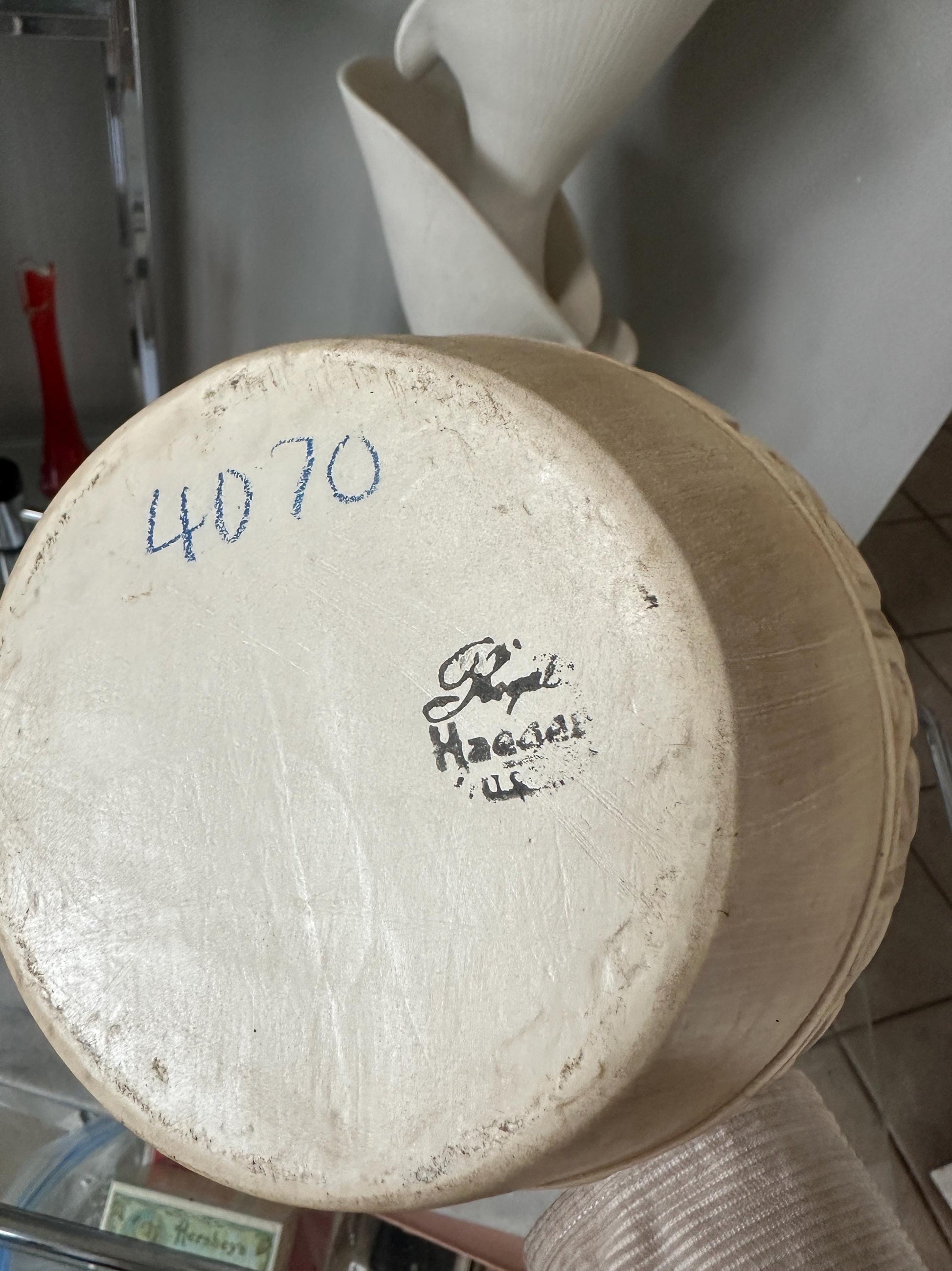 This vintage Haeger vase is a stunning piece of pottery from the mid-20th century. With a long neck and measuring 18 inches in height, it is a beautiful addition to any collection. The vase features a retro and lounge, Greek theme, and is made in the United States.As an original piece, this vase is a must-have for collectors of mid-century modern style pottery. The cream color and gold detailing make it a unique and eye-catching piece. Perfect for displaying flowers or as a decorative item in any room, this Haeger vase is a true gem.