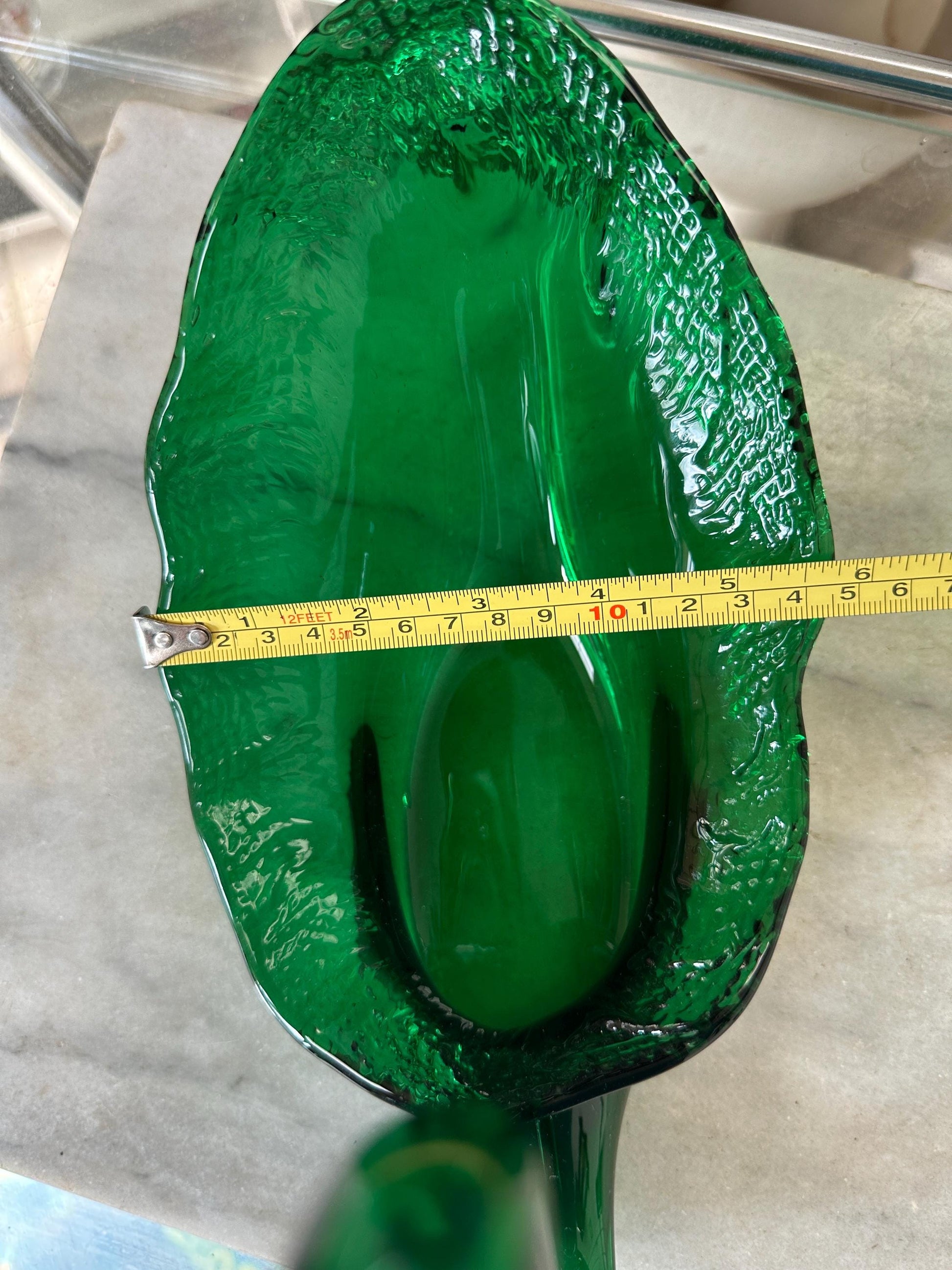 Mid Century Vintage Viking Glass Emetald Green Swan Centerpiece Bowl from the 1960s.This beautiful vintage Viking Glass Swan Centerpuece Decorative Bowl is a perfect addition to any Mid-Century Modern decor.Features a glossy green finish and solid pattern, it is both decorative and functional. The hand-blown glass production technique adds to its charm and uniqueness. The swan subject make it a great conversation starter, and its size of 12 x 9 x 6 inches makes it versatile for use as a centerpiece or catch all bowl. This New Martinsville/Viking piece is an original Mid-20th Century (1941-1969) era trinket dish. The American origin and vintage style make it a must-have for collectors and enthusiasts. In very good vintage condition with no chips or cracks.Displays beautifully and shines brilliantly in the light.