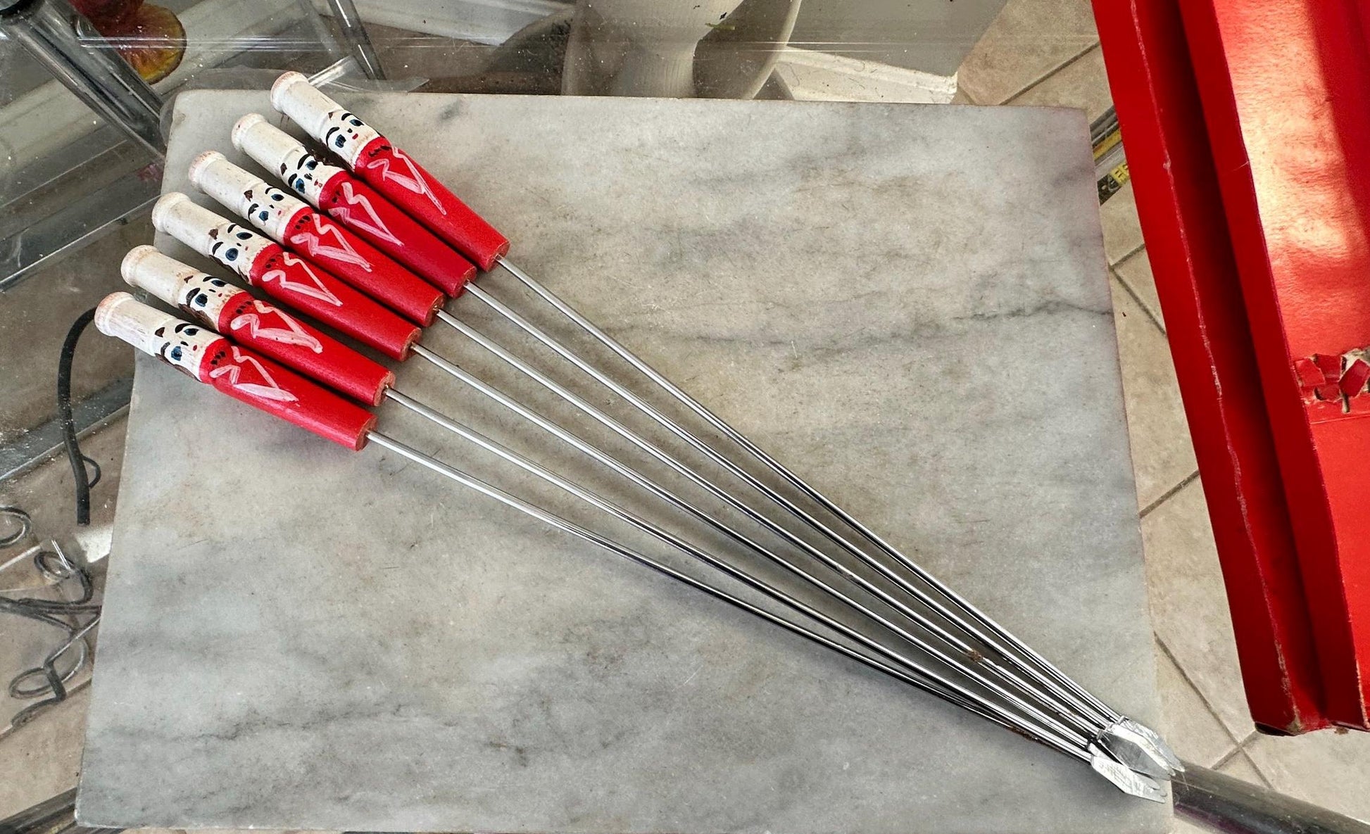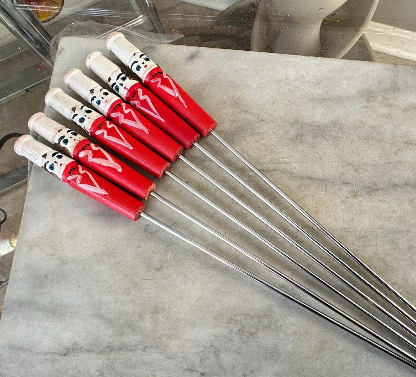 Mid Century Vintage BBQ Skewers | Hand Painted Chef Handles | Kabob & Hot Dog Sticks | Campfire Roasting Set
