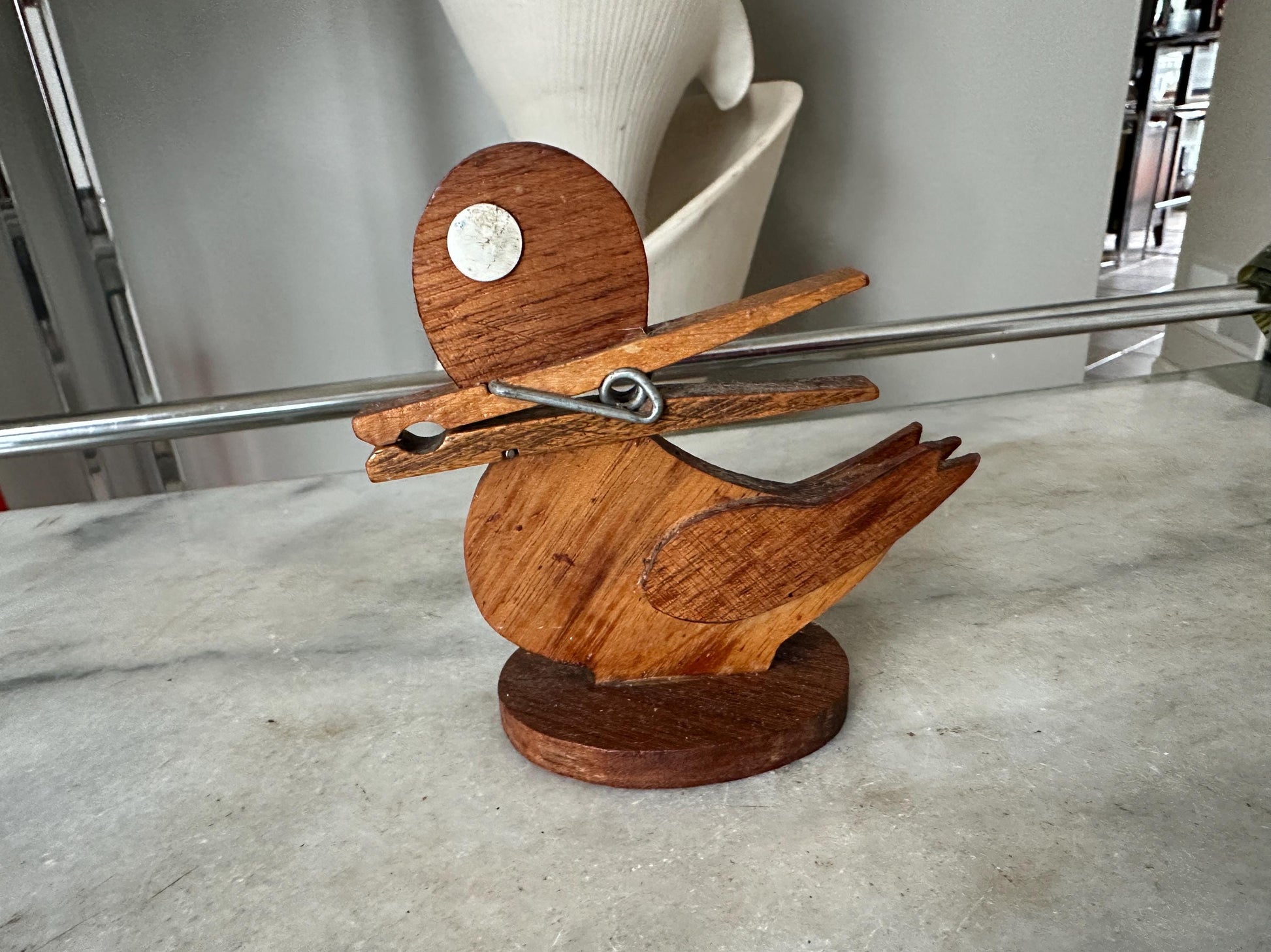 Quirky Handcrafted Wood Duck Figural Clothespin Bill / Recipe / Note Decorative Holder