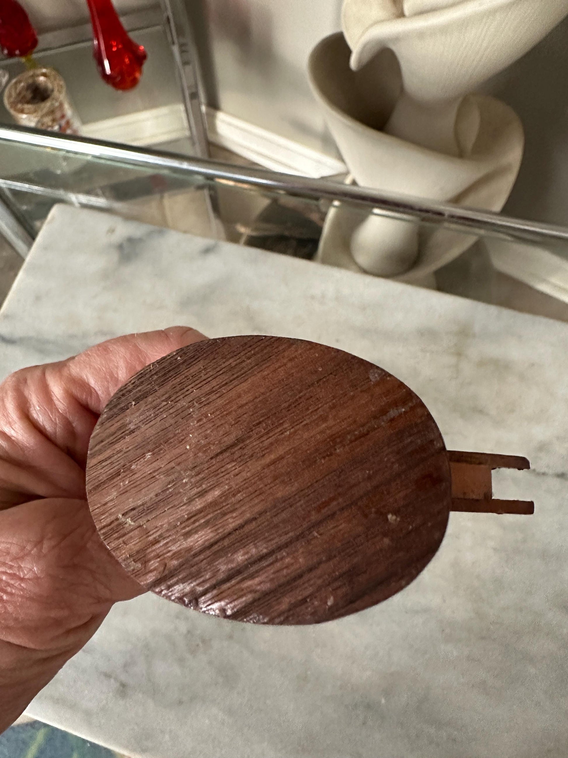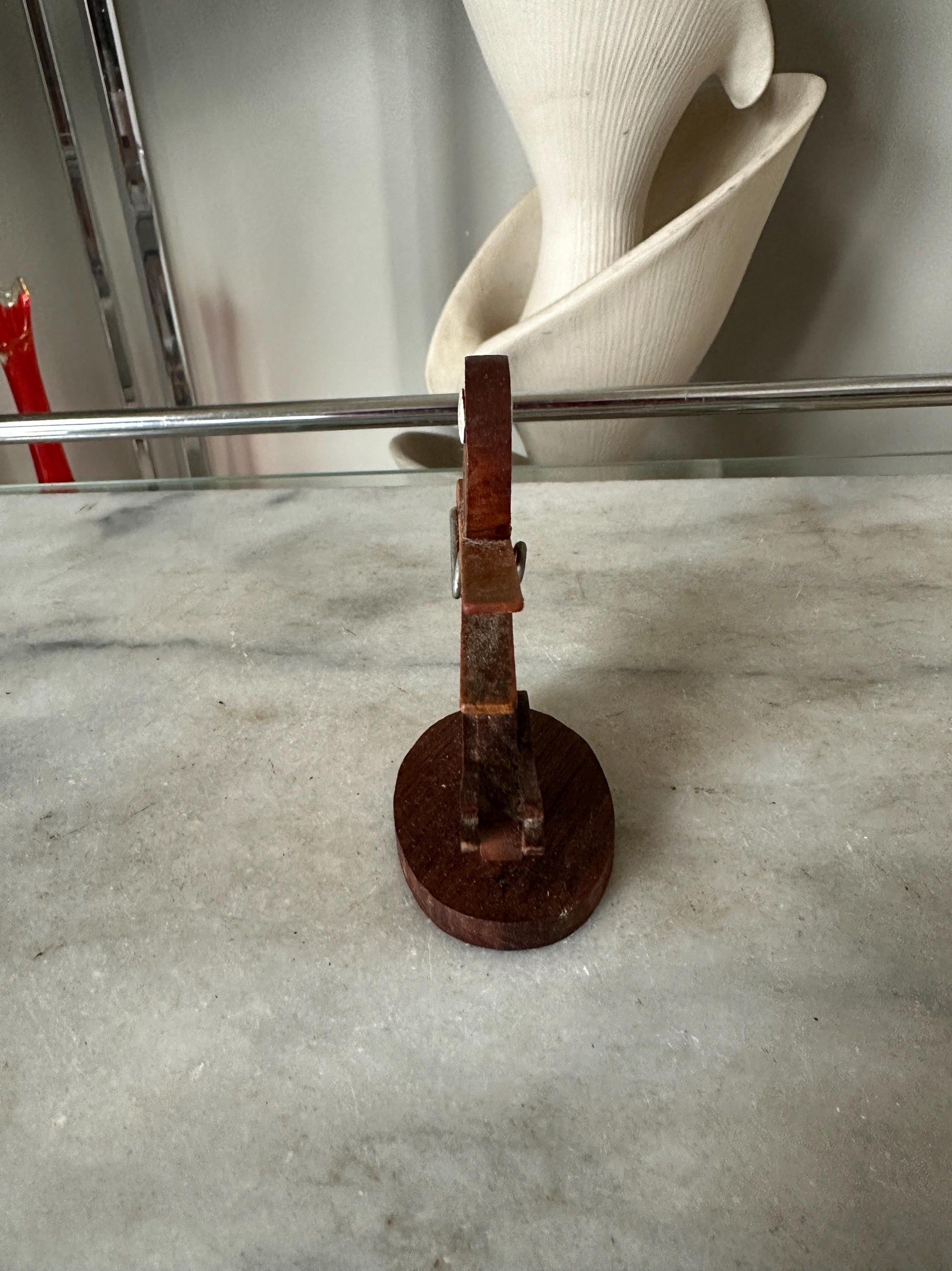 Quirky Handcrafted Wood Duck Figural Clothespin Bill / Recipe / Note Decorative HolderSuper cute! This quirky, handcrafted figural duck is made of solid wood with yellow painted eyes. Perfect for the kitchen or nursery! It stands 4 7/8" high and 4.25" wide. It is narrow, measuring 1.5" deep and weighs 4 oz, without packing materials. It is in good vintage condition with little to no surface wear, and without damage. This clothespin bill is nice and tight so will hold your notes or recipes securely. A nice primitive piece for your country or farmhouse inspired decor. Please see all photos for detail.