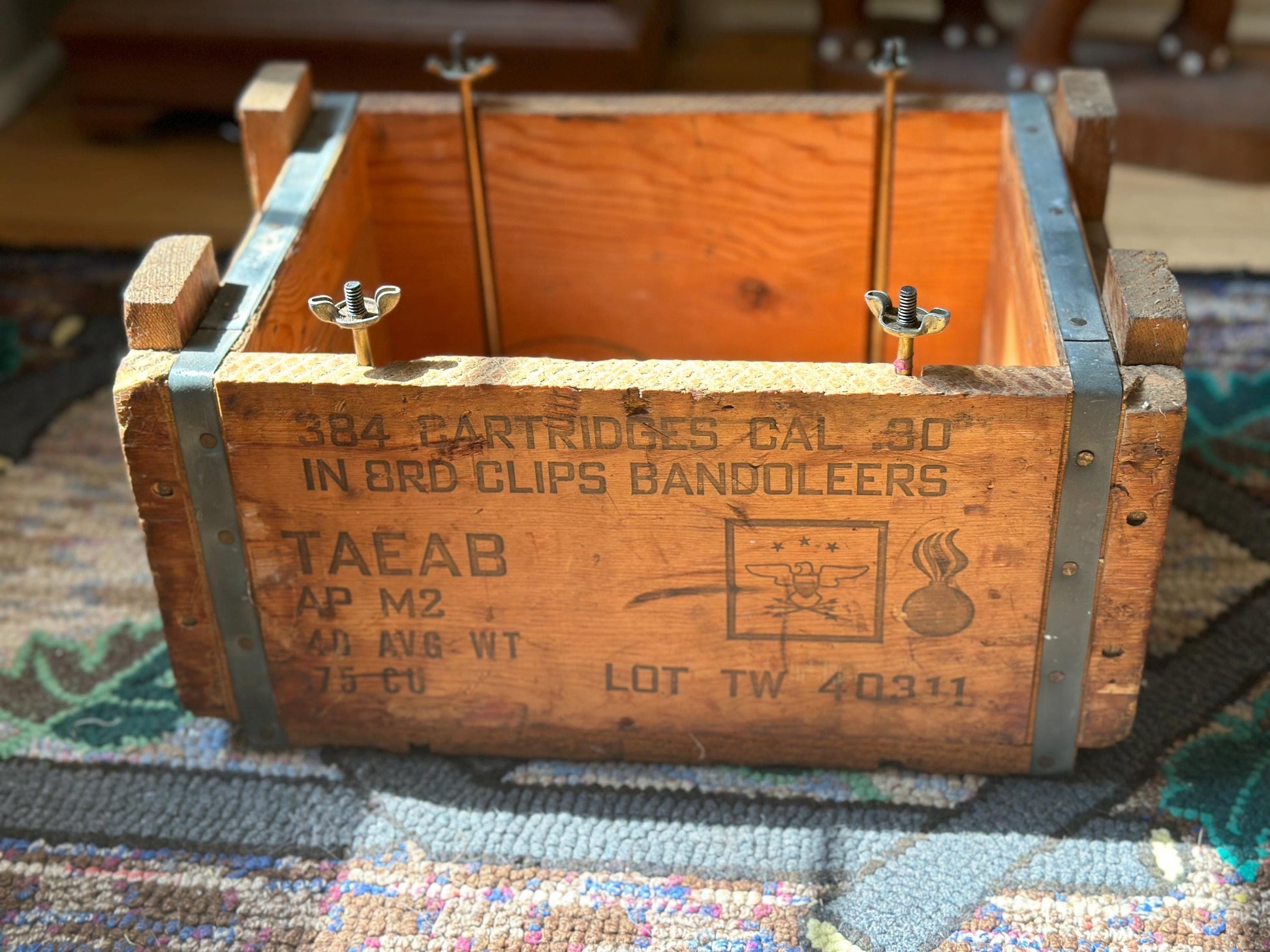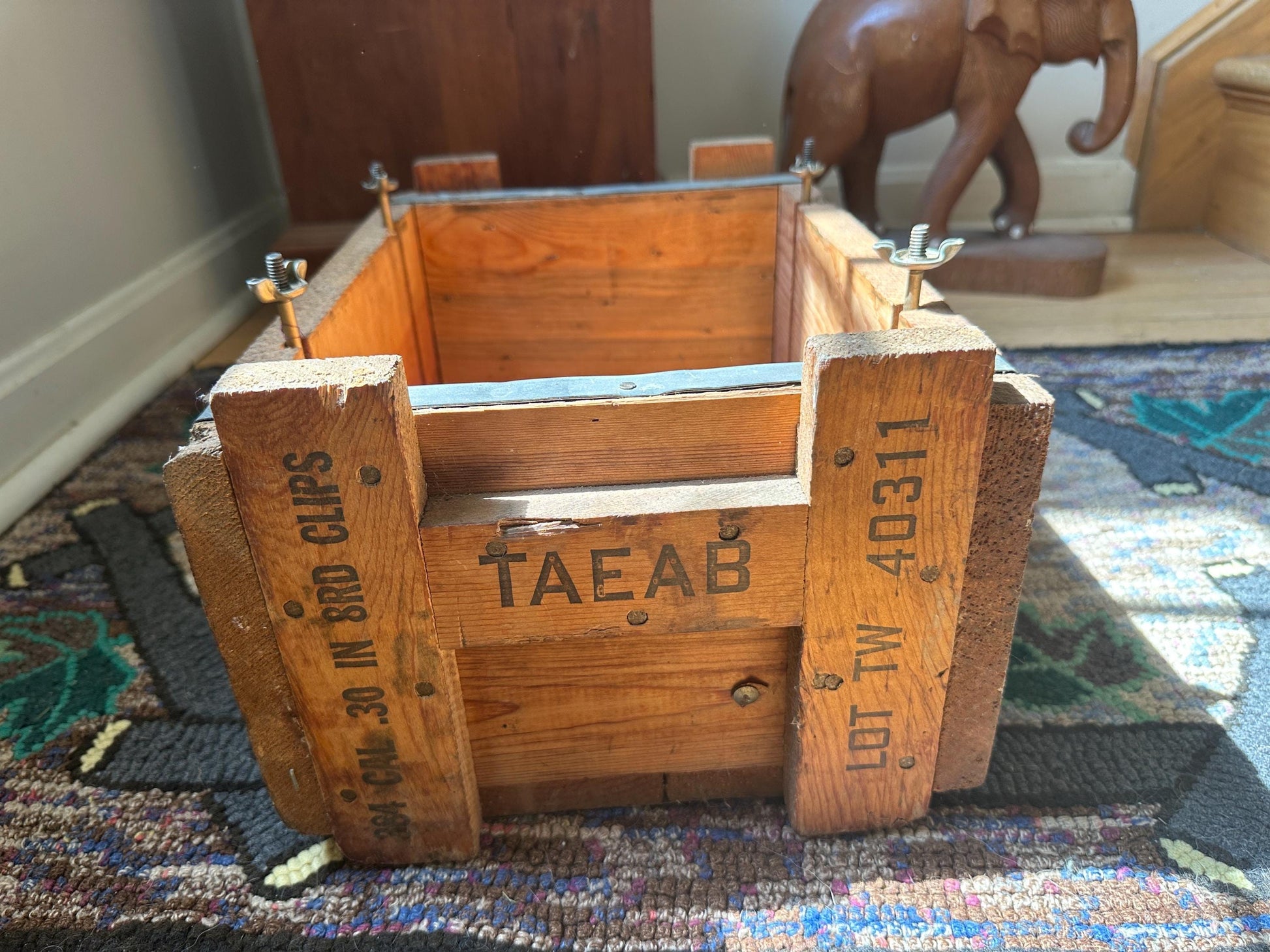 US Army Cal .30 Ball AN-M2 Wood Flaming Bomb Ammo Crate, Militaria, Industrial Decor