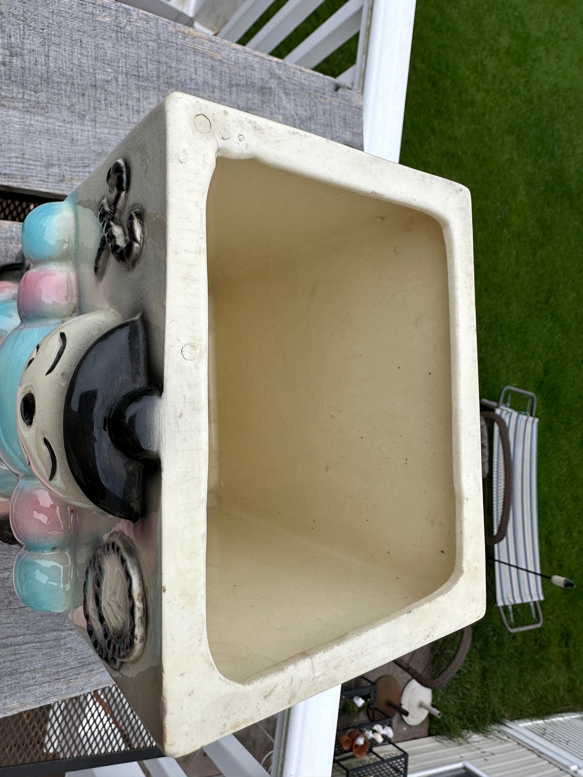 Vintage American Bisque Ugemach Candy Cane Baby Cookie Jar Blue Pink Gray Black