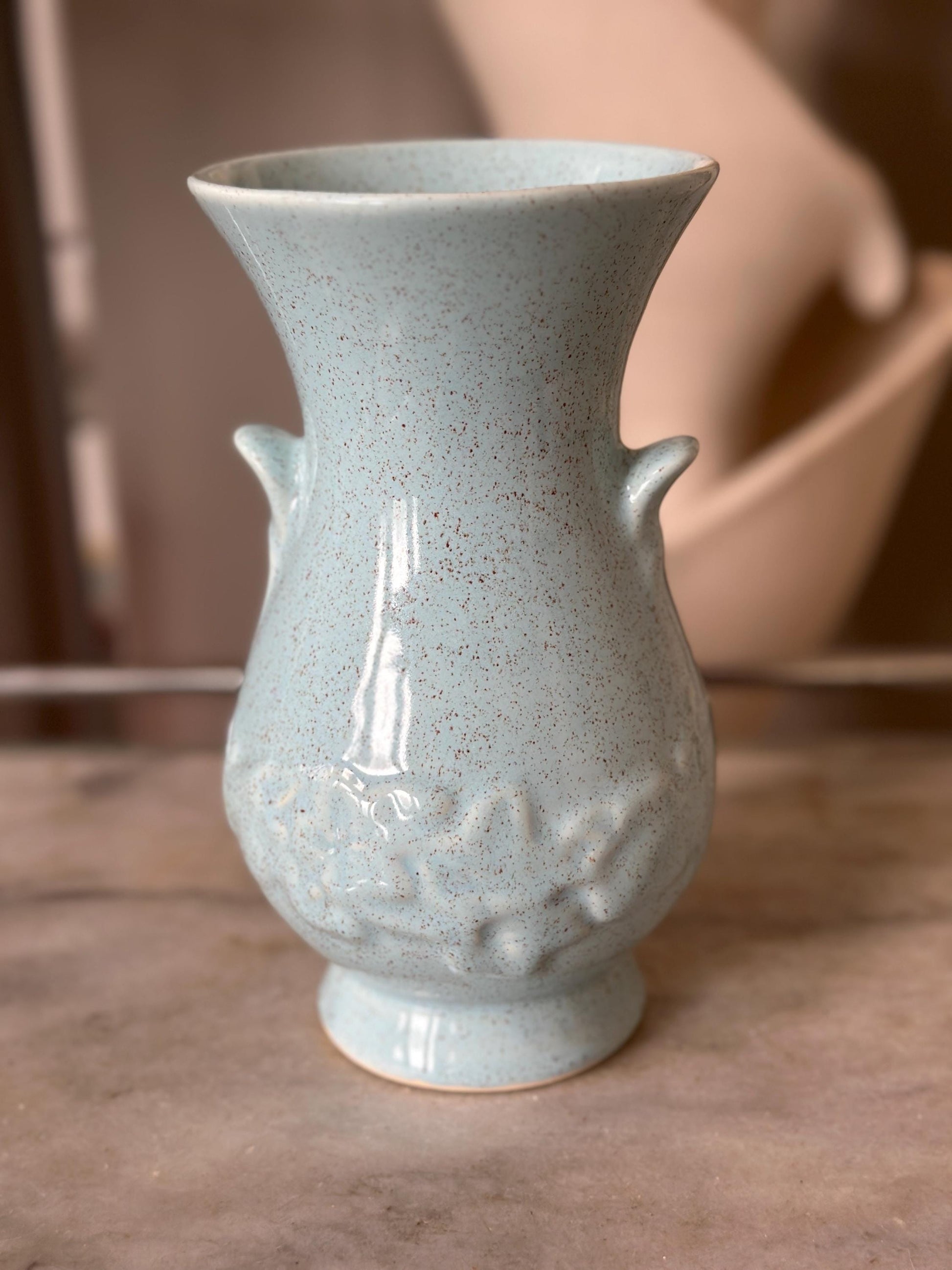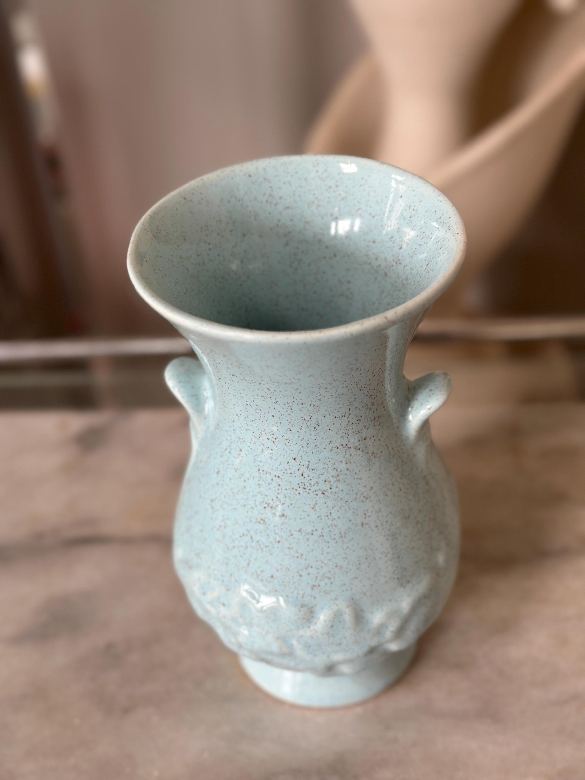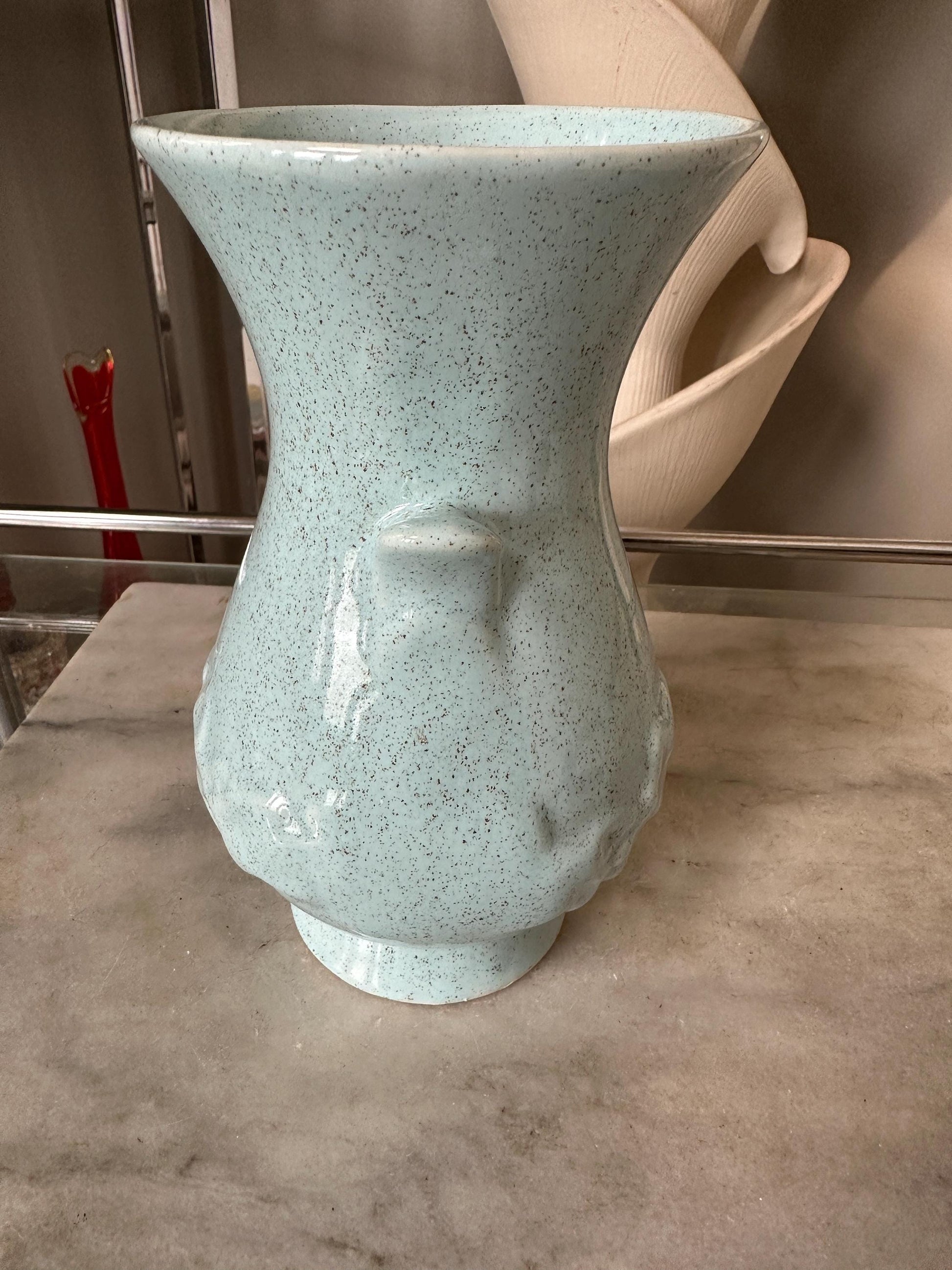 Vintage Brush McCoy Vase: Aqua Speckled Ceramic Vase, USA Pottery