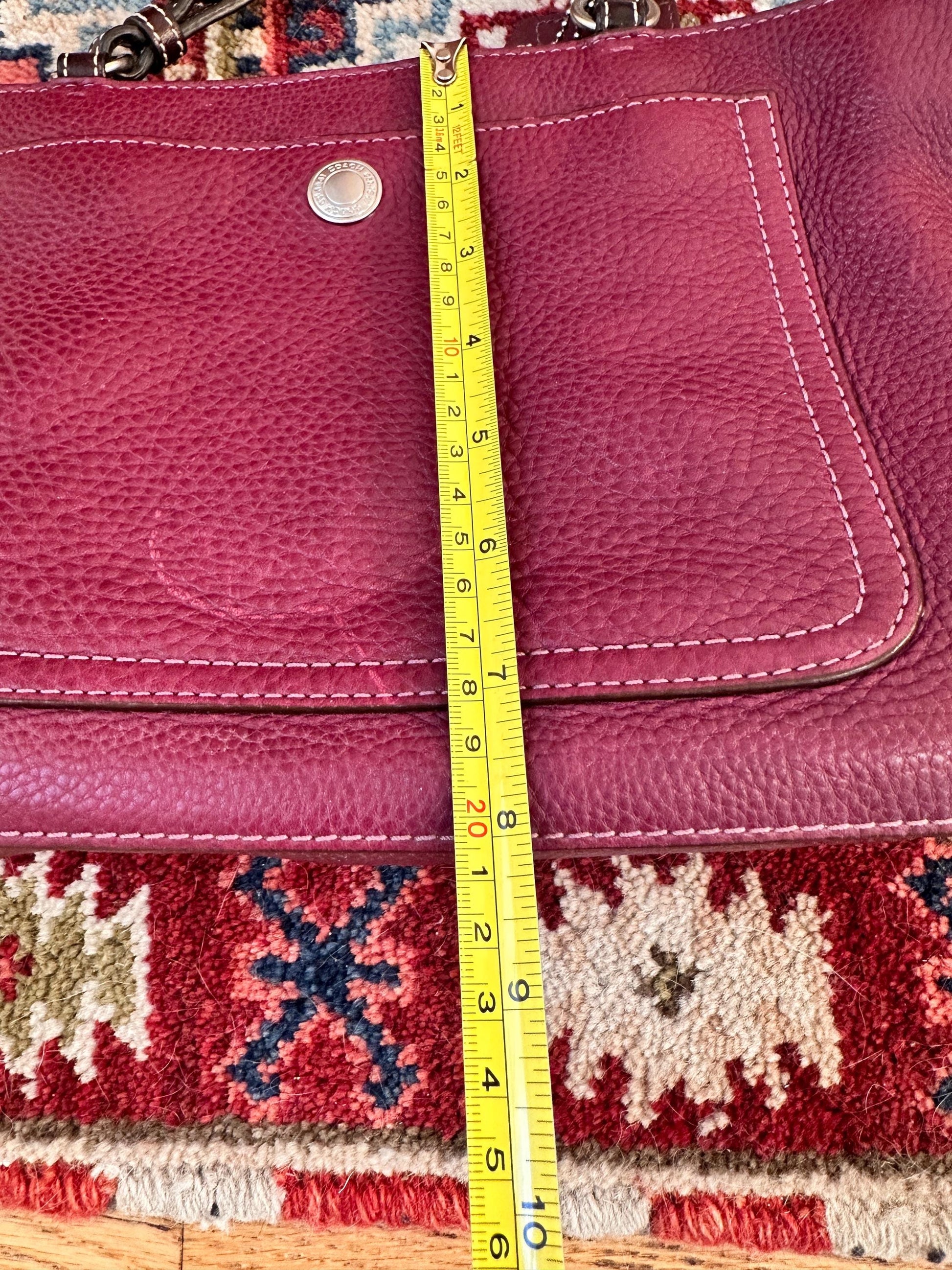 • Brand: Chelsea • Material: Pebbled leather • Color: Burgundy / deep wine • Style: Top handle handbag • Era: Likely 1980s–1990s • Structure: Firm structured bodyApproximate Measurements: • Height: ~8–9 inches • Width: ~10–11 inches • Depth: ~3–4 inches • Handle drop: ~4 inchesCondition: Good vintage condition with normal wear consistent with age. Light surface wear may be present on the leather and hardware, adding to the bag’s vintage character. Please review photos for details.Why You’ll Love It: • Classic structured vintage design • Rich burgundy pebbled leather • Perfect everyday vintage handbag • Timeless style that never goes out of fashioKeywords / Tags: vintage leather handbag, burgundy leather purse, chelsea handbag, vintage top handle bag, 90s leather purse, classic vintage purse, structured leather bag, burgundy handbag, vintage accessor