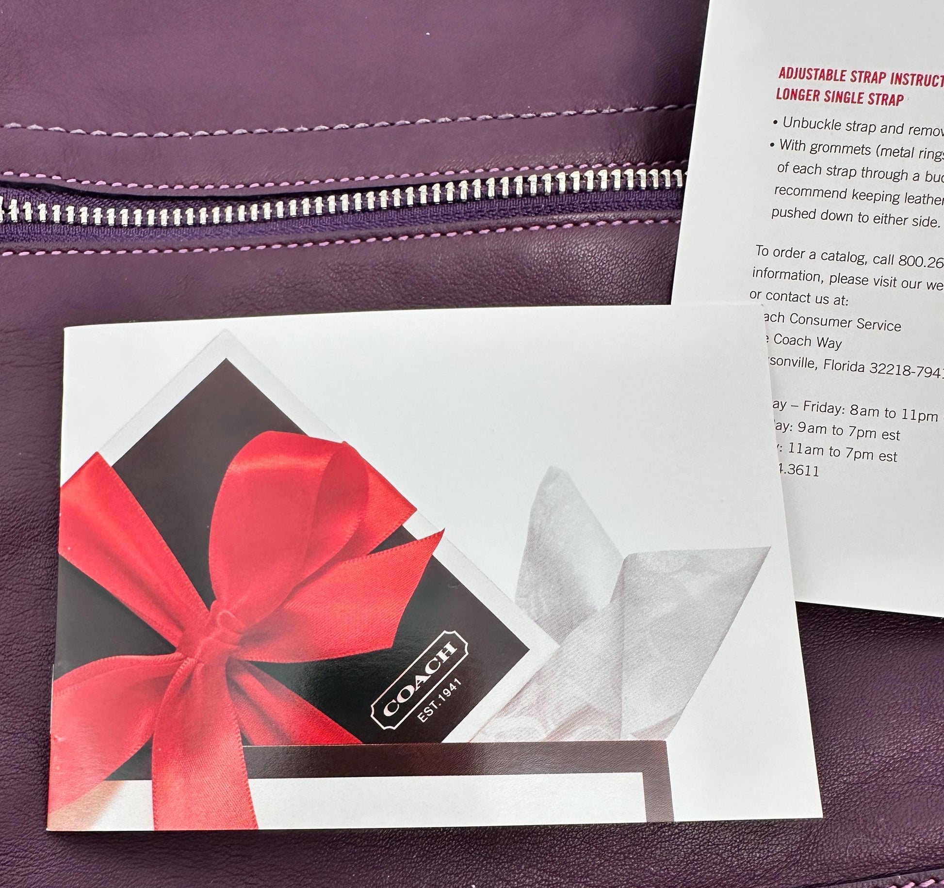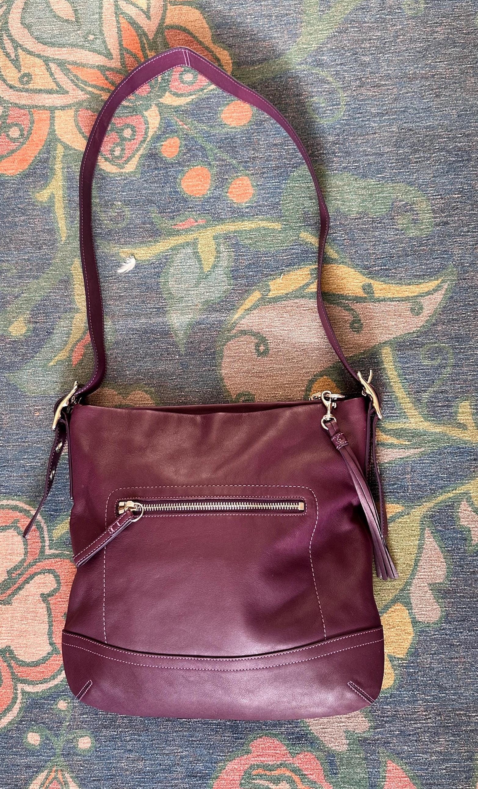 • Authentic vintage Coach Soho style • Early 2000s / Y2K era • Rich deep purple leather • Adjustable shoulder strap • Zip-top closure • Interior pocket for organization • Classic minimalist Coach designMeasurements: • Width: approx. 12 inches • Height: approx. 12 inches • Strap: adjustable shoulder dropExcellent condition. Appears to have never been used - original pamphlets are present. Interior is clean. Please review photos carefully for details of condition.Why You’ll Love It: • Classic early 2000s Coach style • Unique deep purple color • Durable, high-quality leather • Perfect everyday shoulder bagGreat For: Y2K fashion lovers, vintage Coach collectors, everyday wear, or as a unique vintage gift.vintage coach bag coach soho bag y2k coach purse coach purple bag vintage coach purse coach leather bag 2000s coach handbag coach shoulder bag vintage designer bag coach handbag y2k purple leather purse coach collectible vintage coach soho