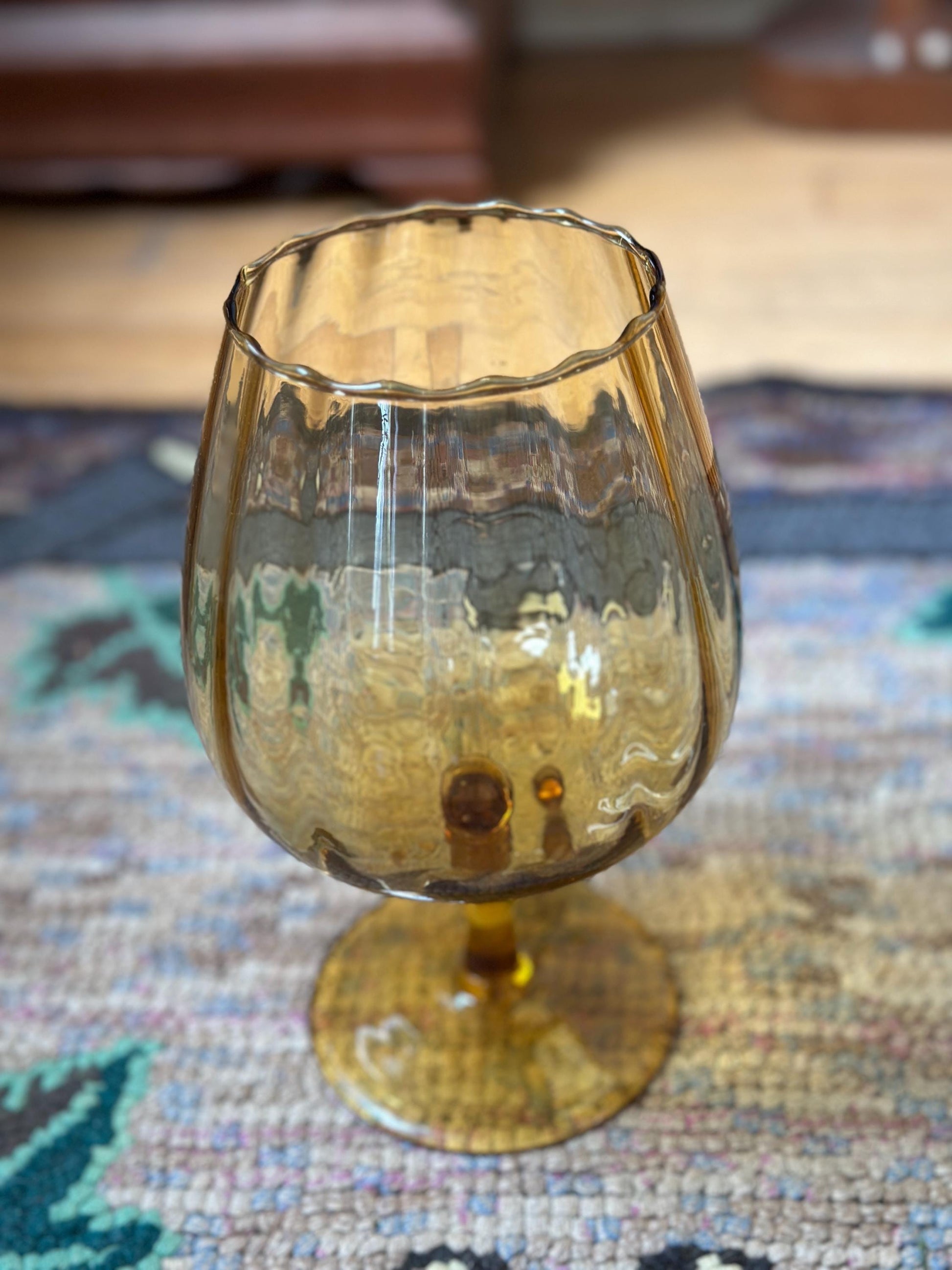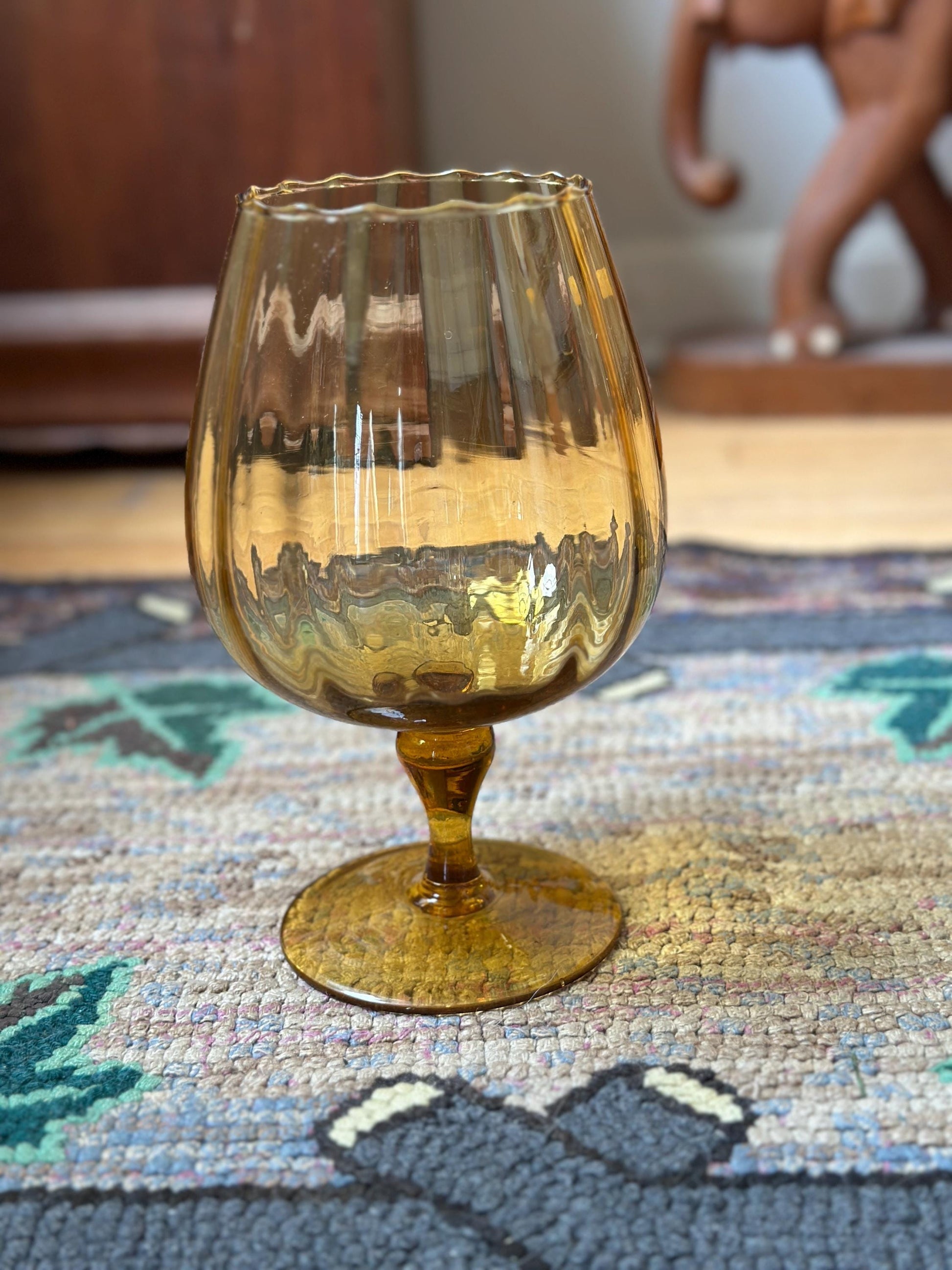 Vintage Empoli Amber Glass Snifter: Mid-Century Modern Italian Art Glass