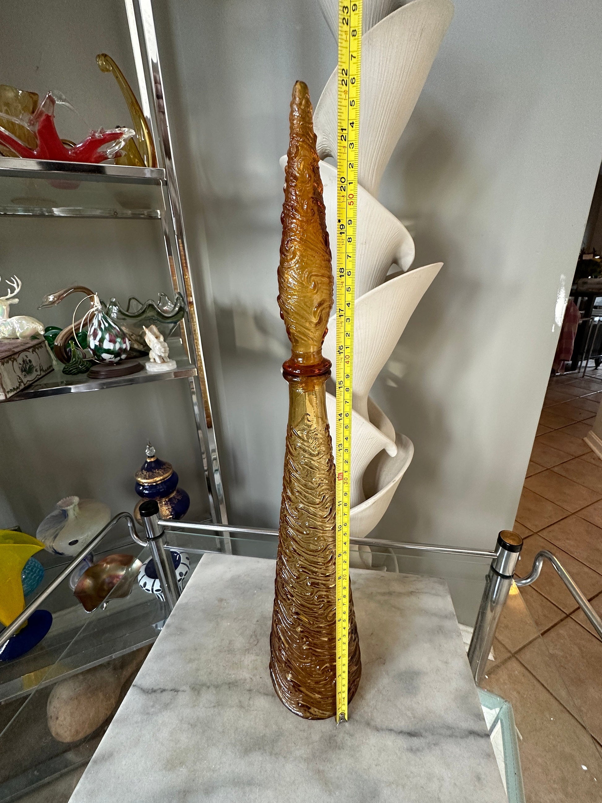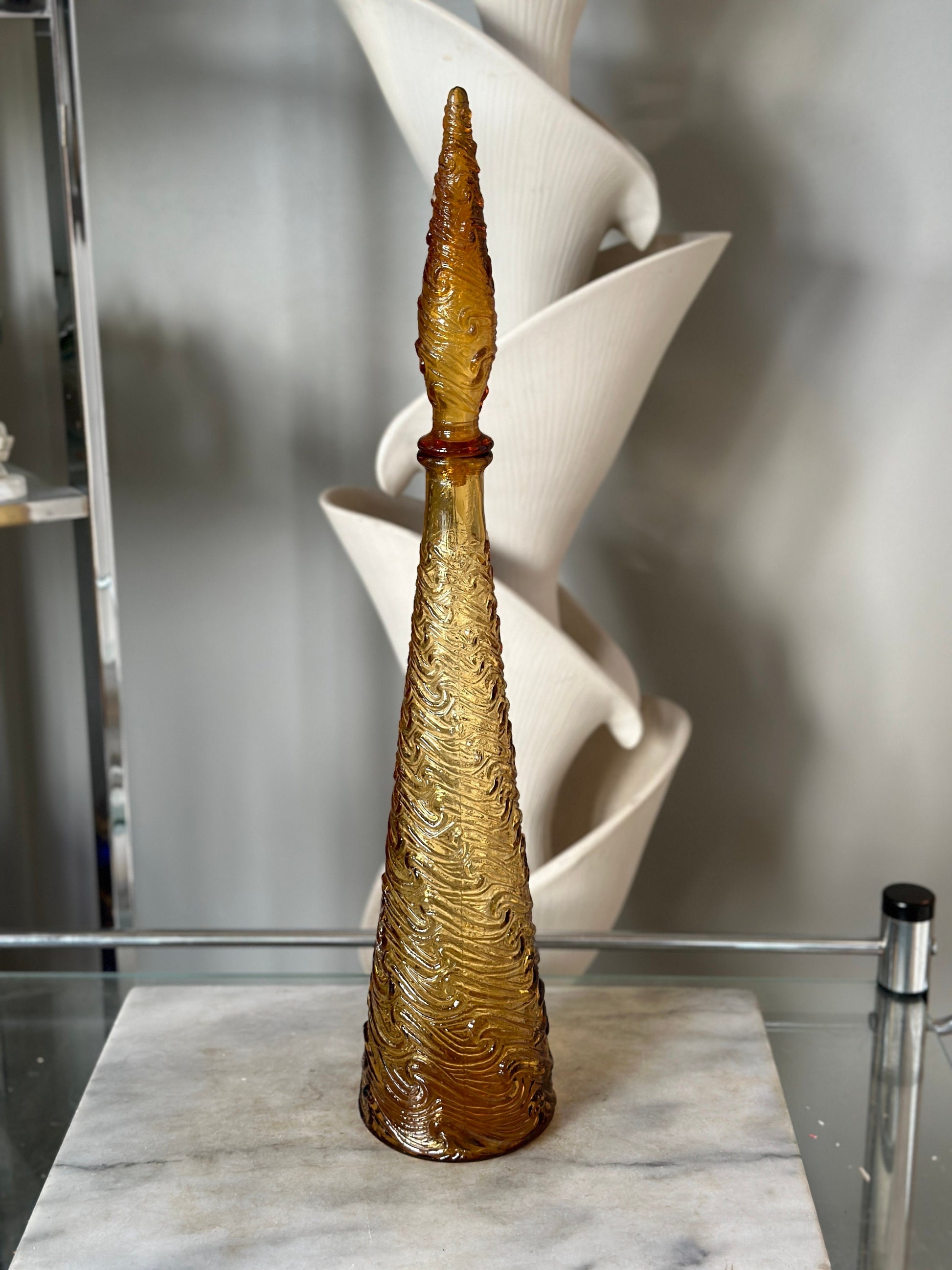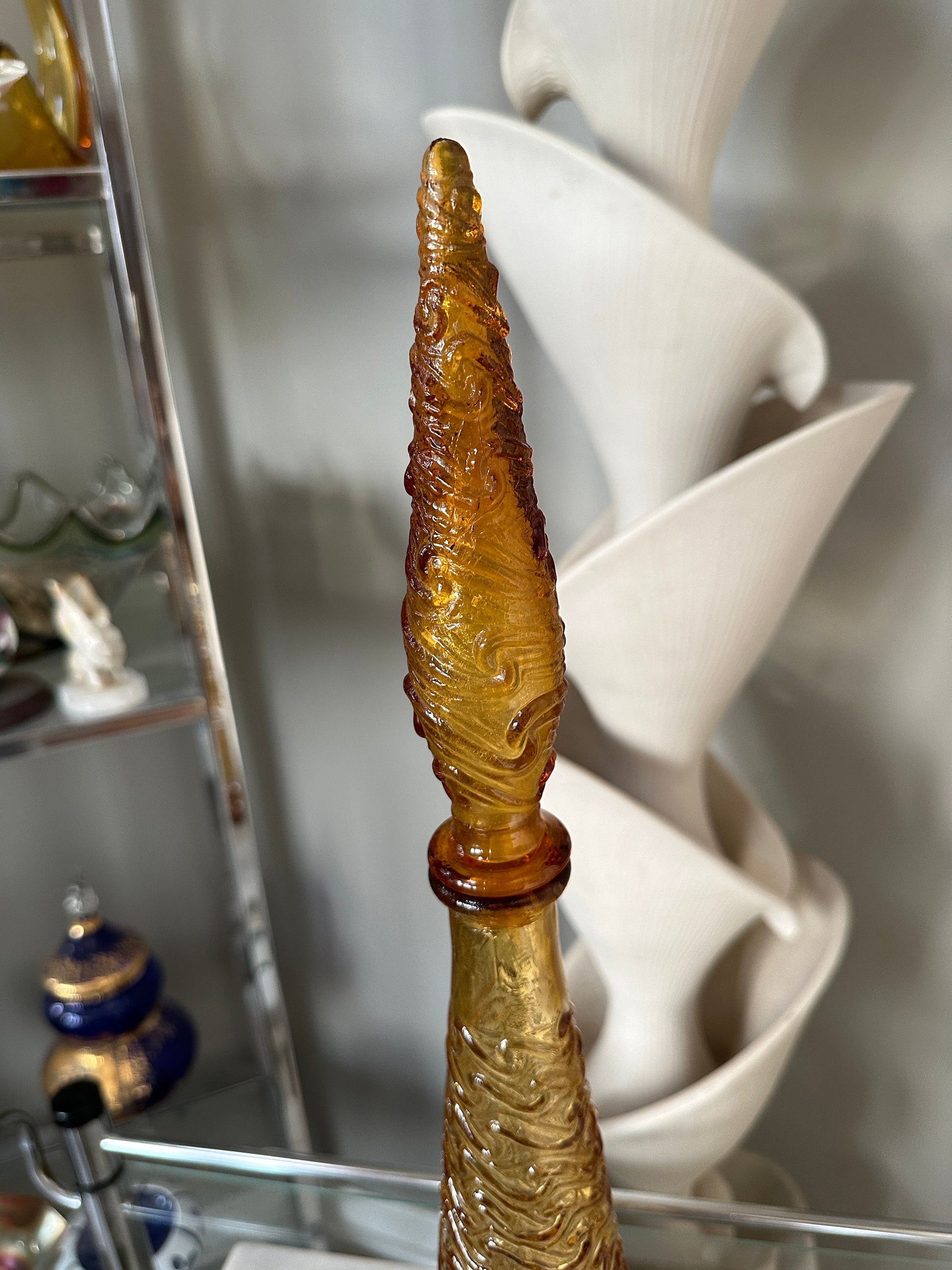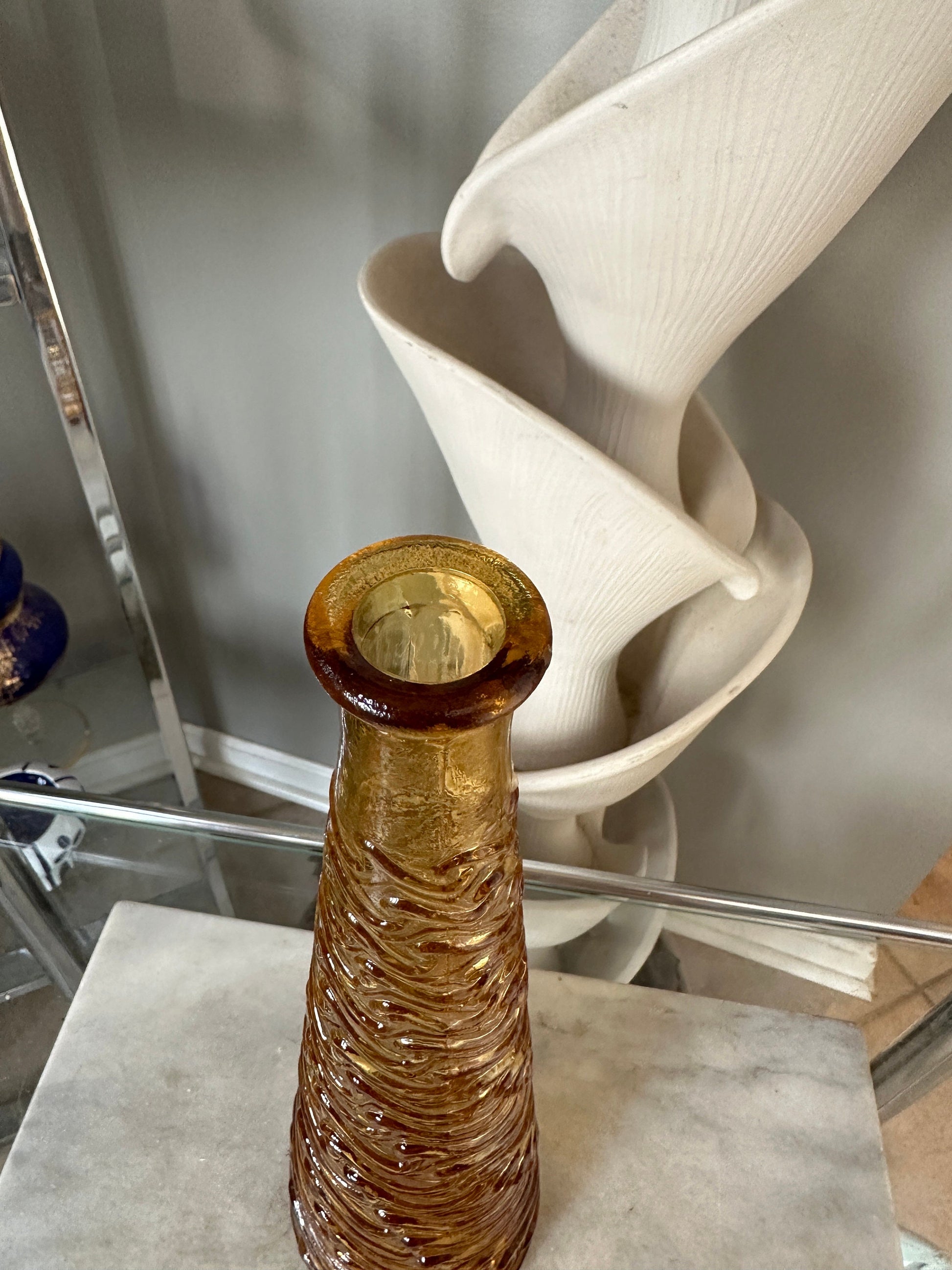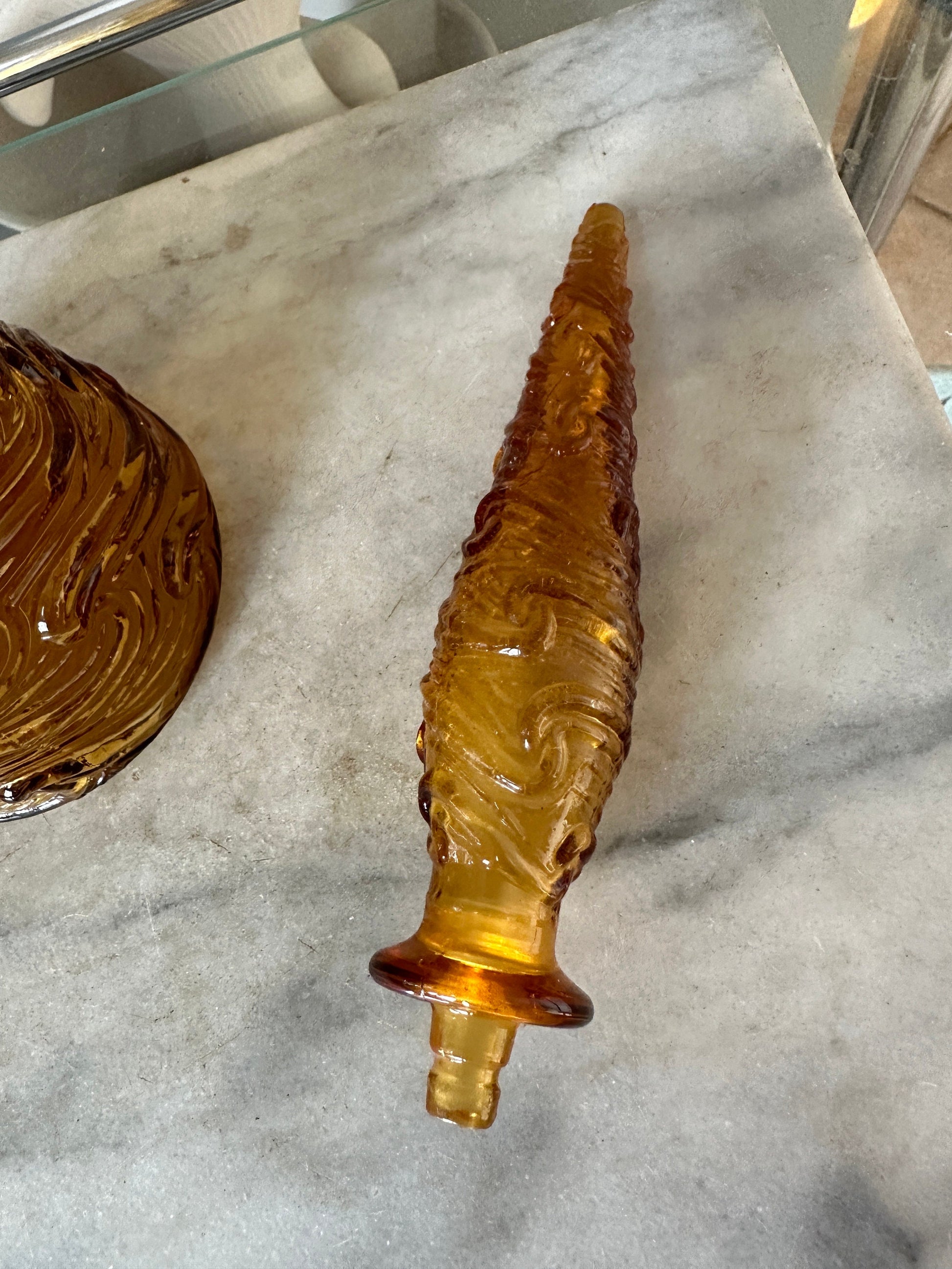 Vintage Empoli Style Decanter Carafe Amber Wave Genie Bottle Italy 22"
