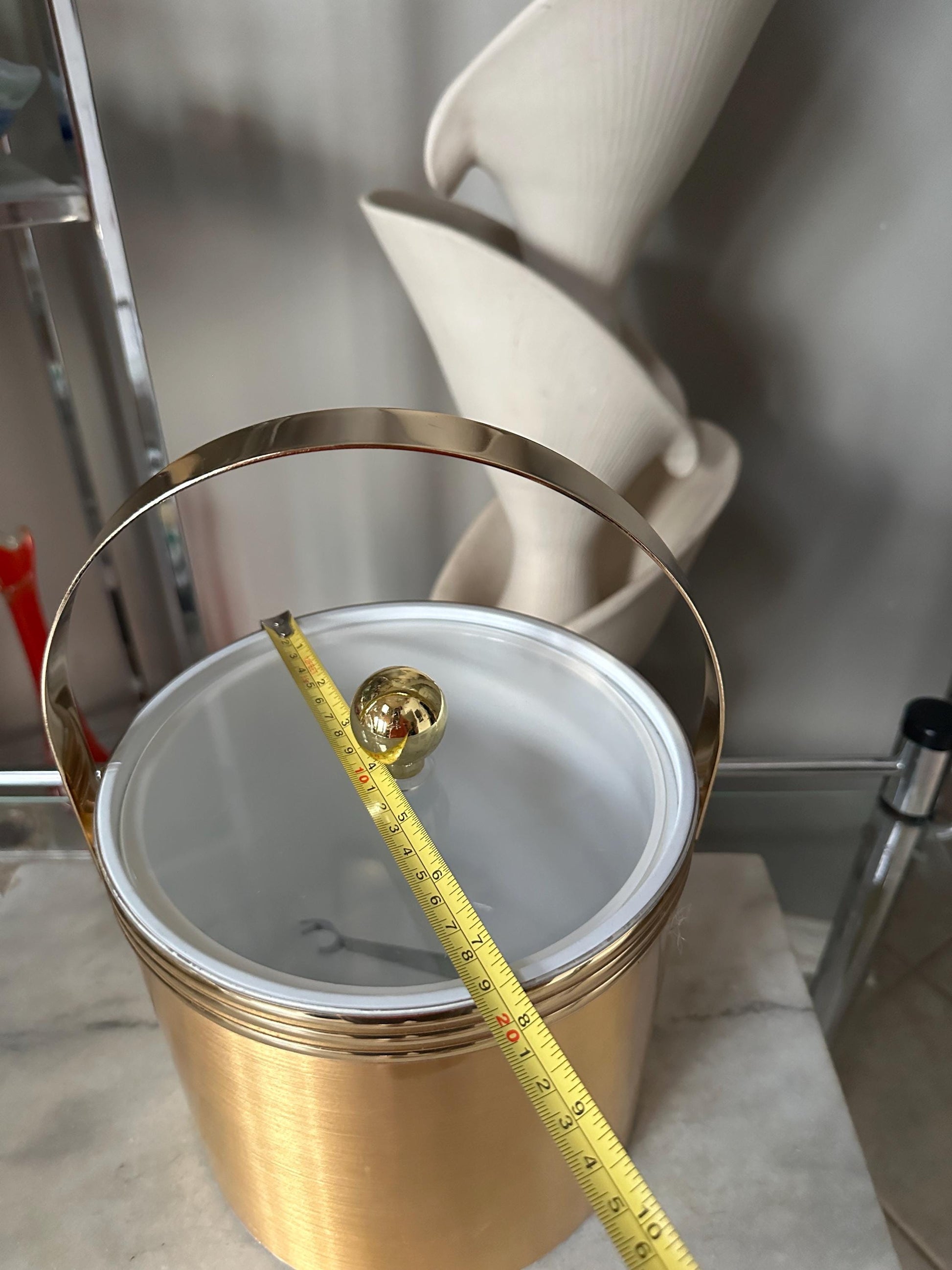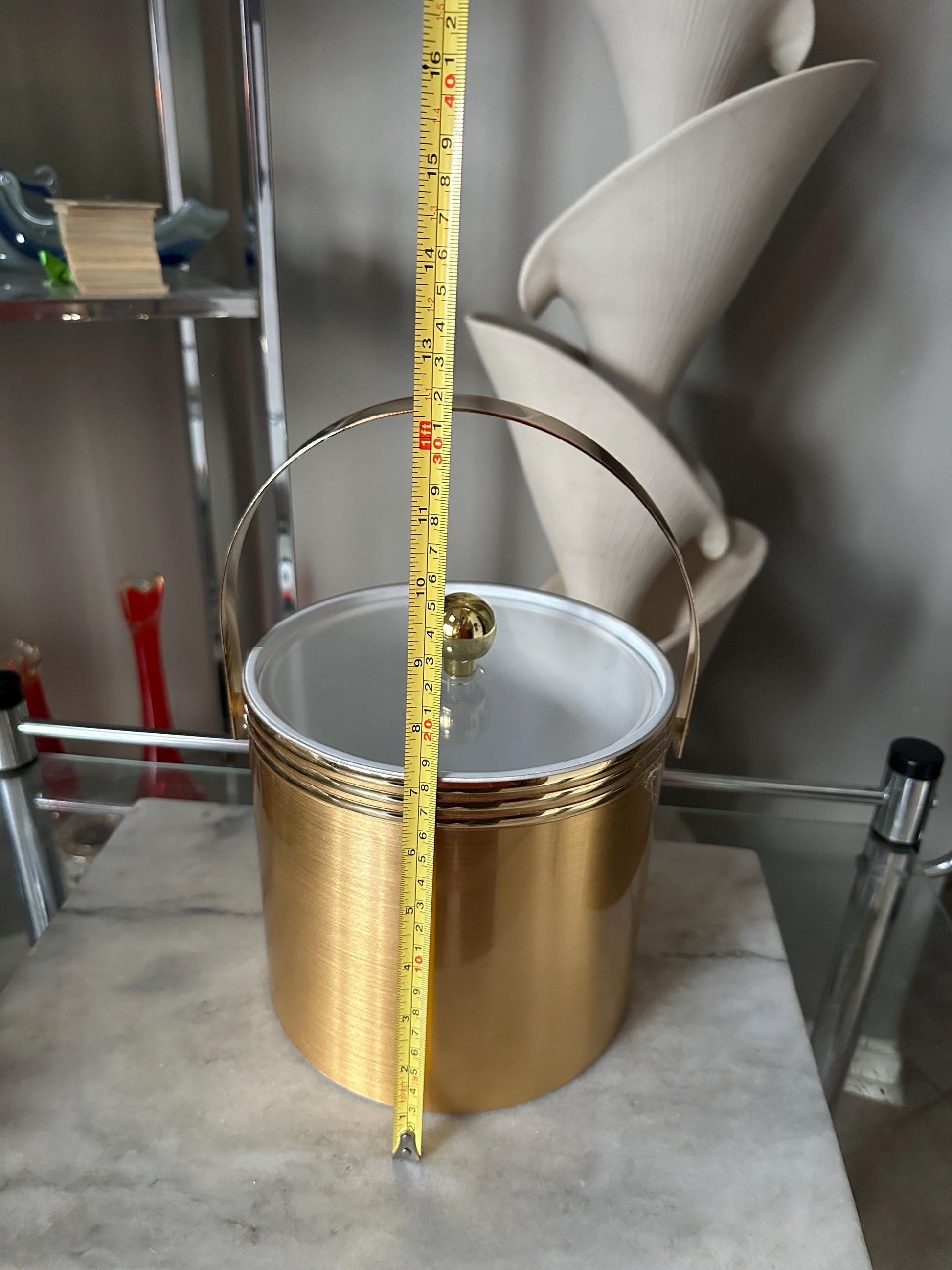 Vintage Gold MCM Ice Bucket | Mid Century Modern Barware with Lucite Lid & Metal Ice Tongs | Retro Cocktail Party DecorAdd a touch of mid-century sophistication to your bar cart or cocktail setup with this stunning Vintage Gold MCM Ice Bucket! A true statement piece, this retro treasure features a rich gold exterior and includes a clear lucite lid and original metal ice tongs, making it both stylish and functional.🌟 Features:Authentic Mid-Century Modern (MCM) design