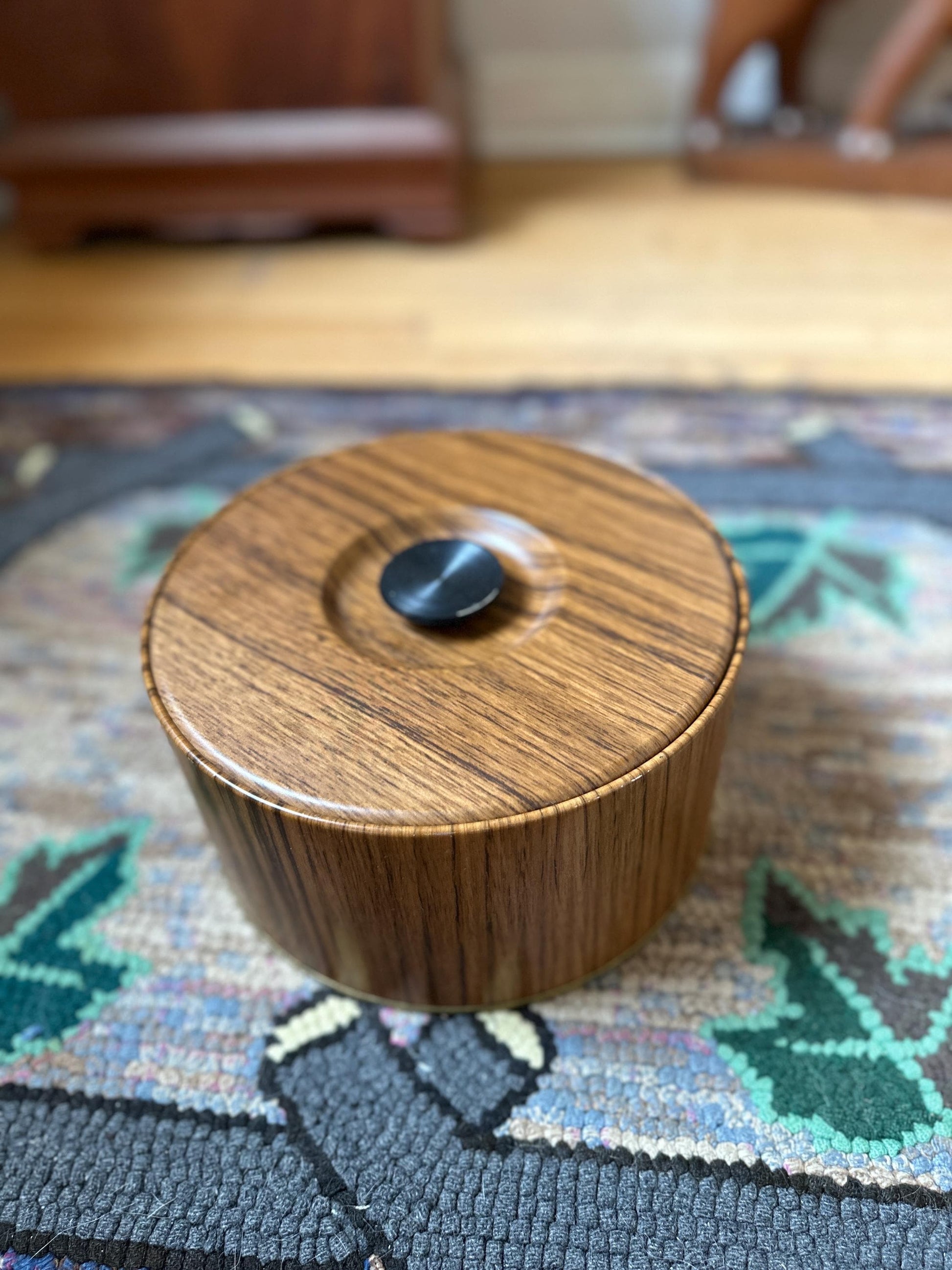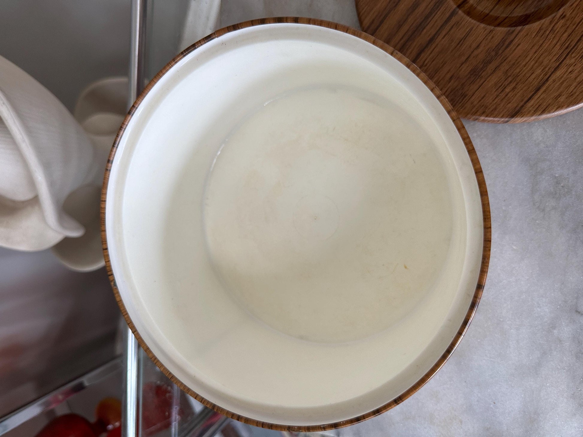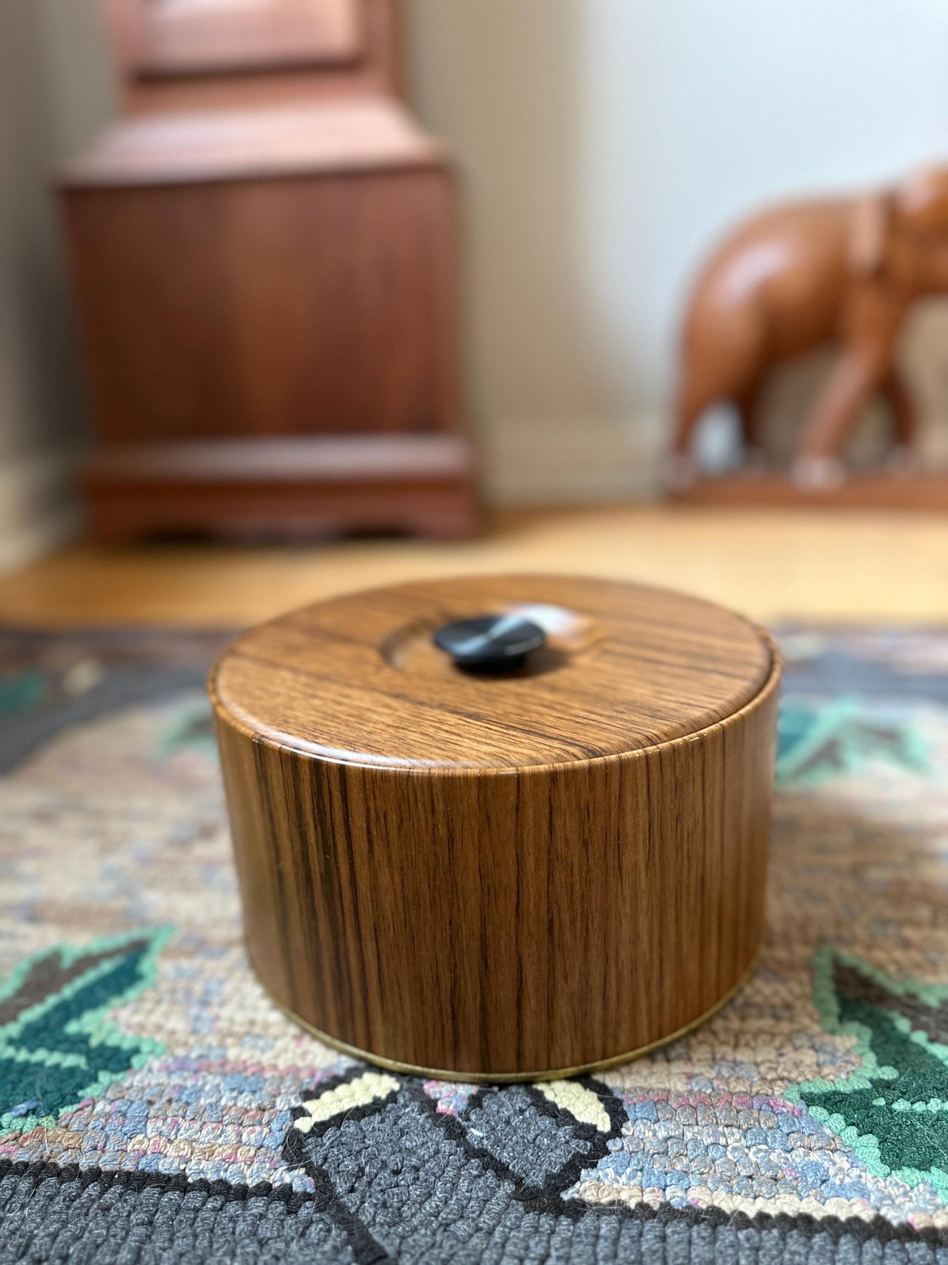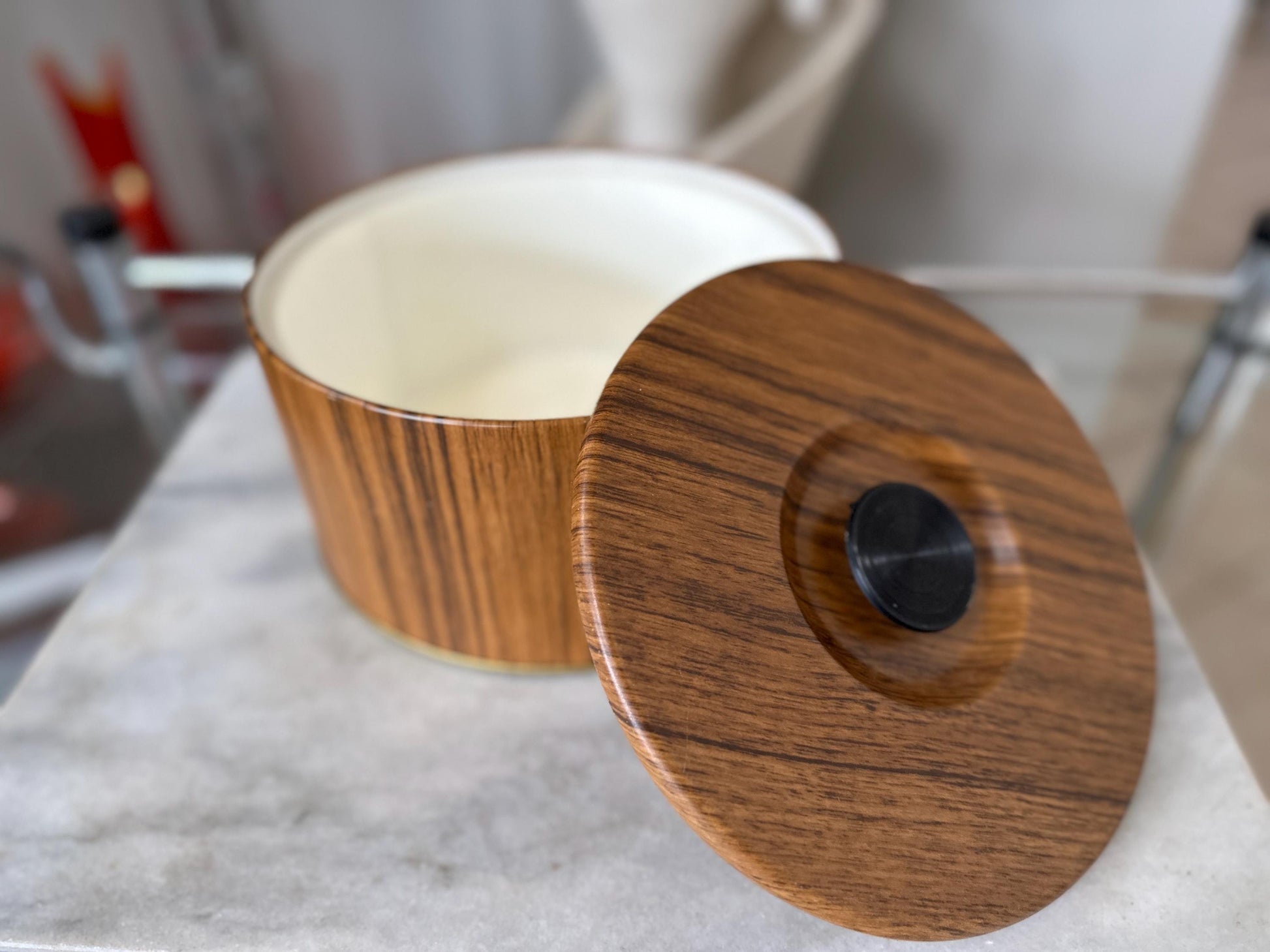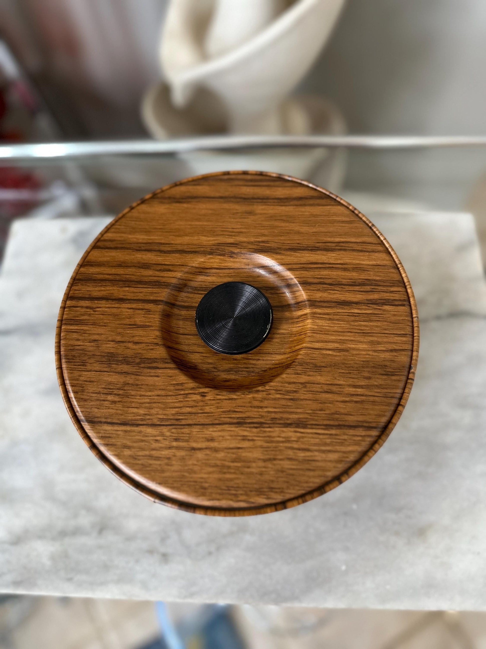 Wood Grain Ice Bucket, Round Guildcraft Ice Box, Vintage Insulated Countertop Storage Box, MCM Retro Barware, Metal Ice Holder