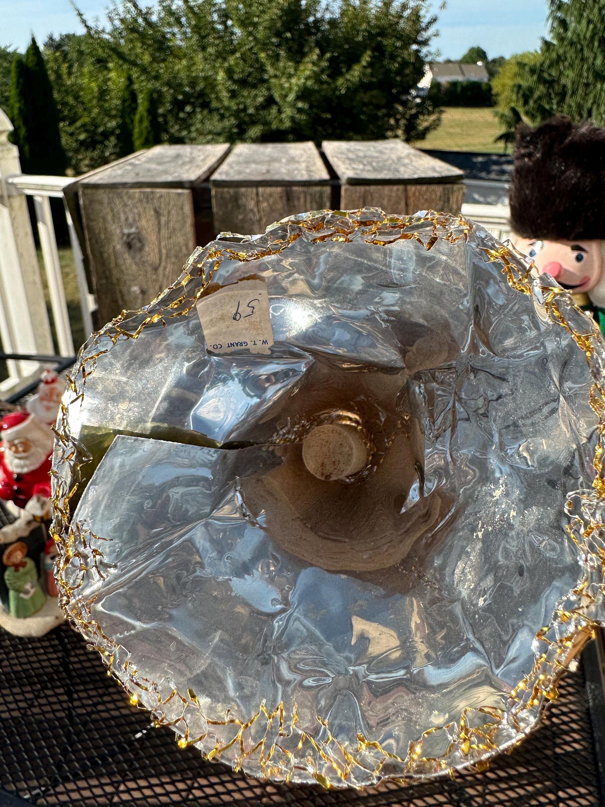 Condition: Vintage good; some expected wear due to age—light crazing and patina on foil add to the authentic vintage charm. No chips or cracks.