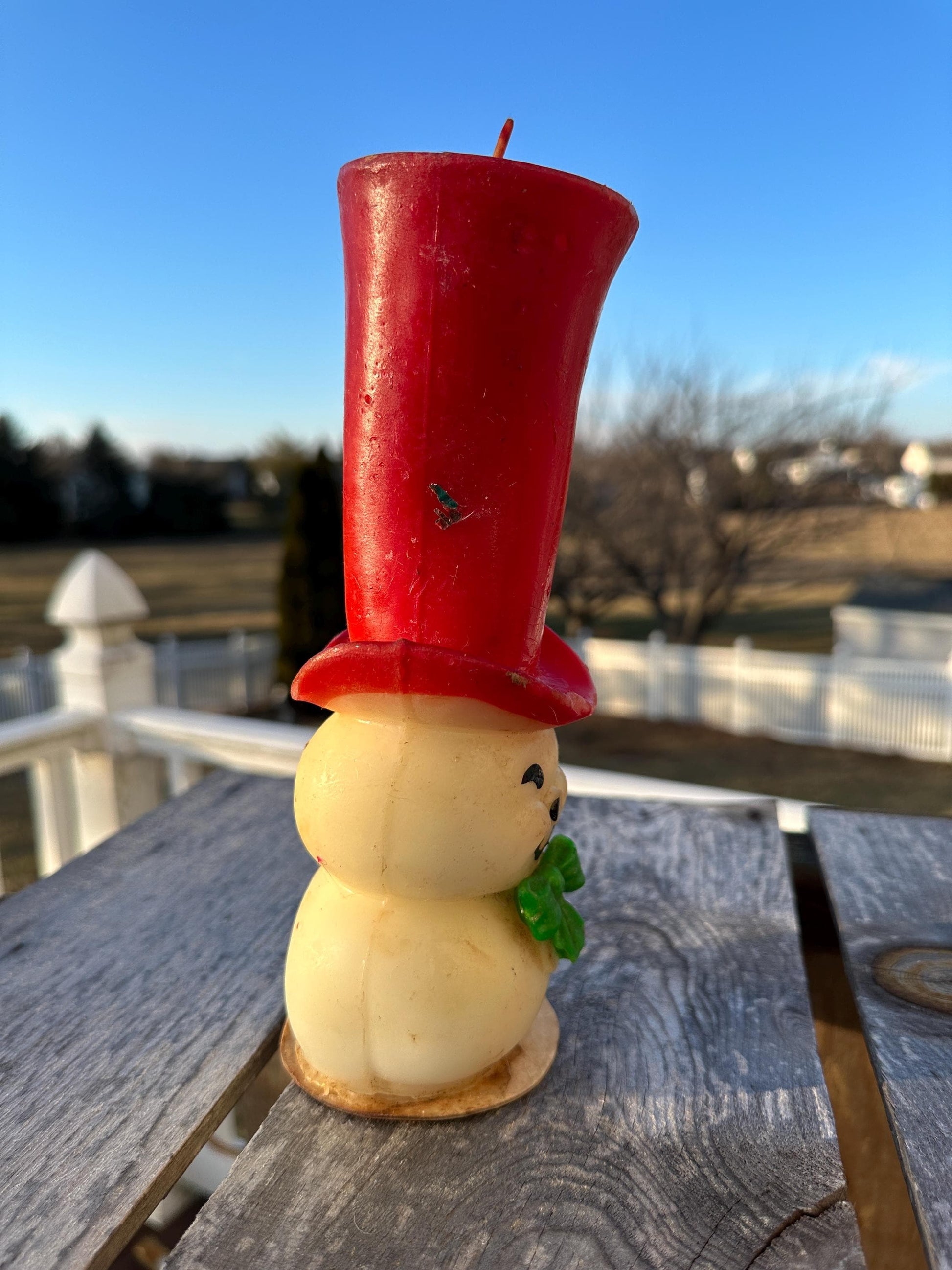 Vintage Mid Century Modern Snowman Top Hat Christmas Candle 8 1/2" Tall