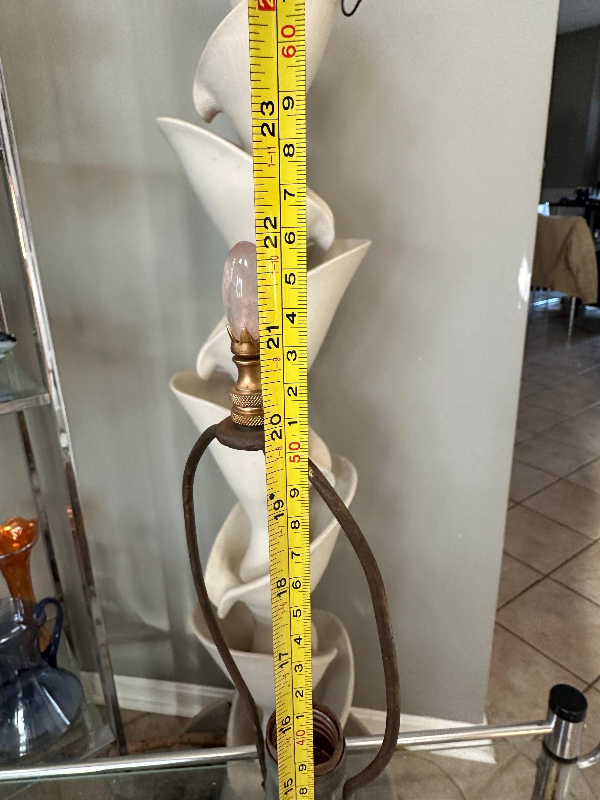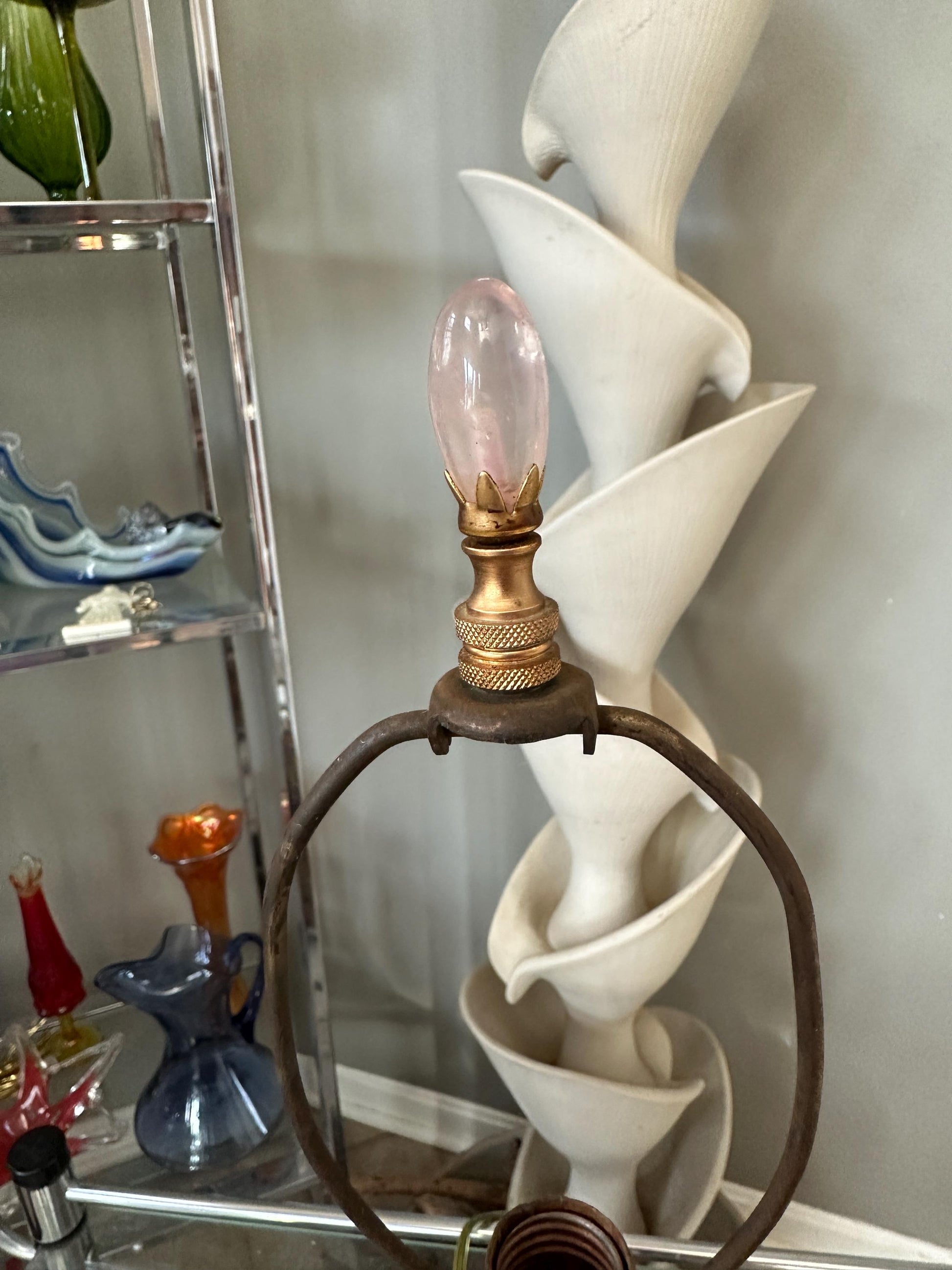 Style: Neoclassical / Classical Revival Era: Vintage Height: Approximately 22 inches (to finial), 14.75” (to socket.)Materials: Ornate brass or bronze-tone metal body White marble base Form: Urn-shaped column with scroll handles Socket: Standard rotary socket Color Palette: Aged brass/bronze, white marble (Shade not included.)Decorative metal and glass finial.Condition Good vintage condition. Visible patina and surface wear consistent with age Metal shows natural darkening and character Marble base is intact with light wear Wiring and socket appear vintage; rewiring is recommended if intended for daily usePlease review all photos carefully, as they are part of the description.Perfect For Traditional or neoclassical interiors Library, study, or formal living room Antique and vintage décor collectors Hollywood Regency or European-style homesVintage table lamp, neoclassical lamp, marble base lamp, brass urn lamp, classical lighting, antique style lamp, traditional décor, vintage brass lamp, European décor