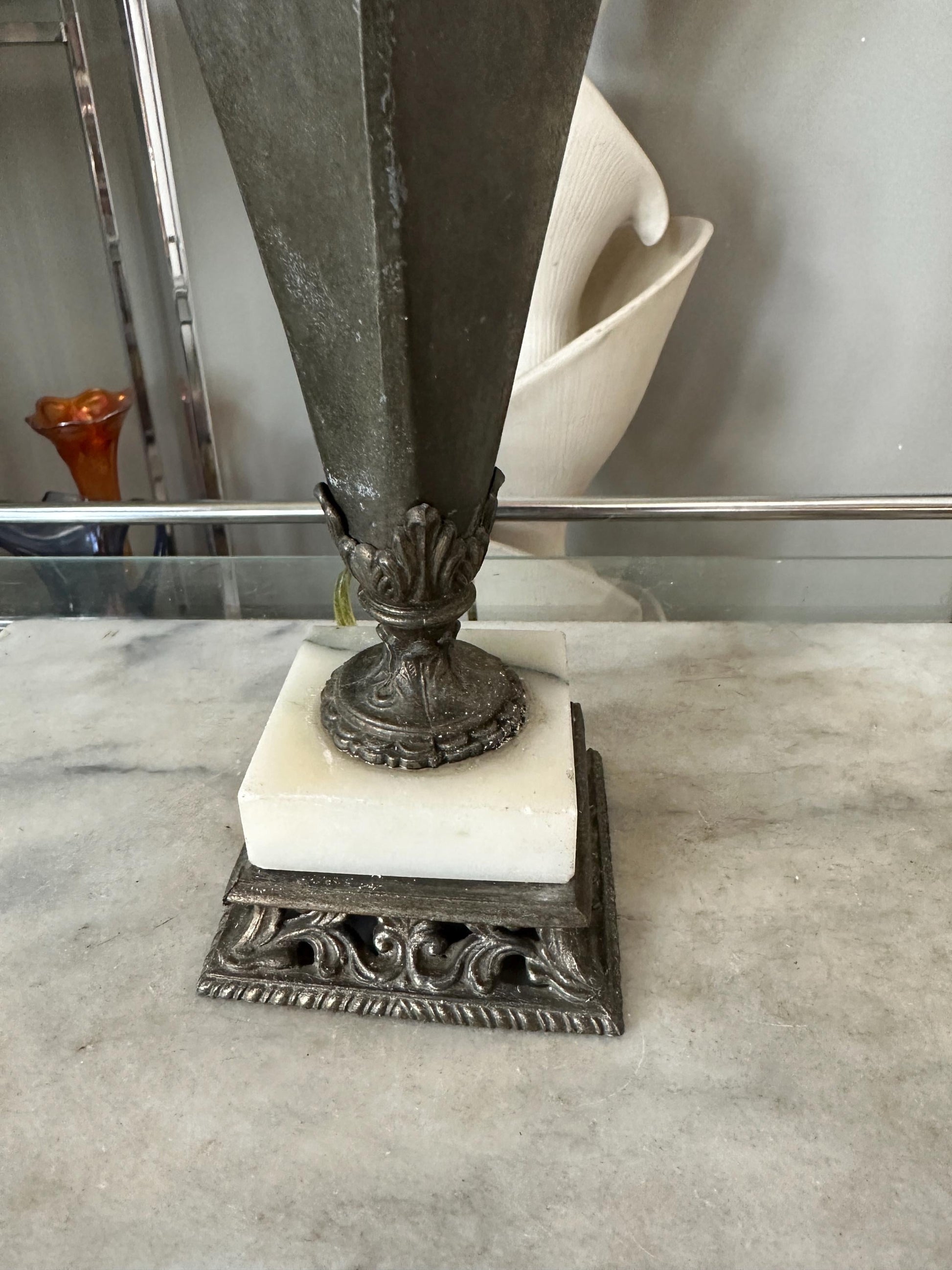 Vintage Neoclassical Marble & Ornate Metal Table Lamp – Classical Urn Form – 22” Tall
