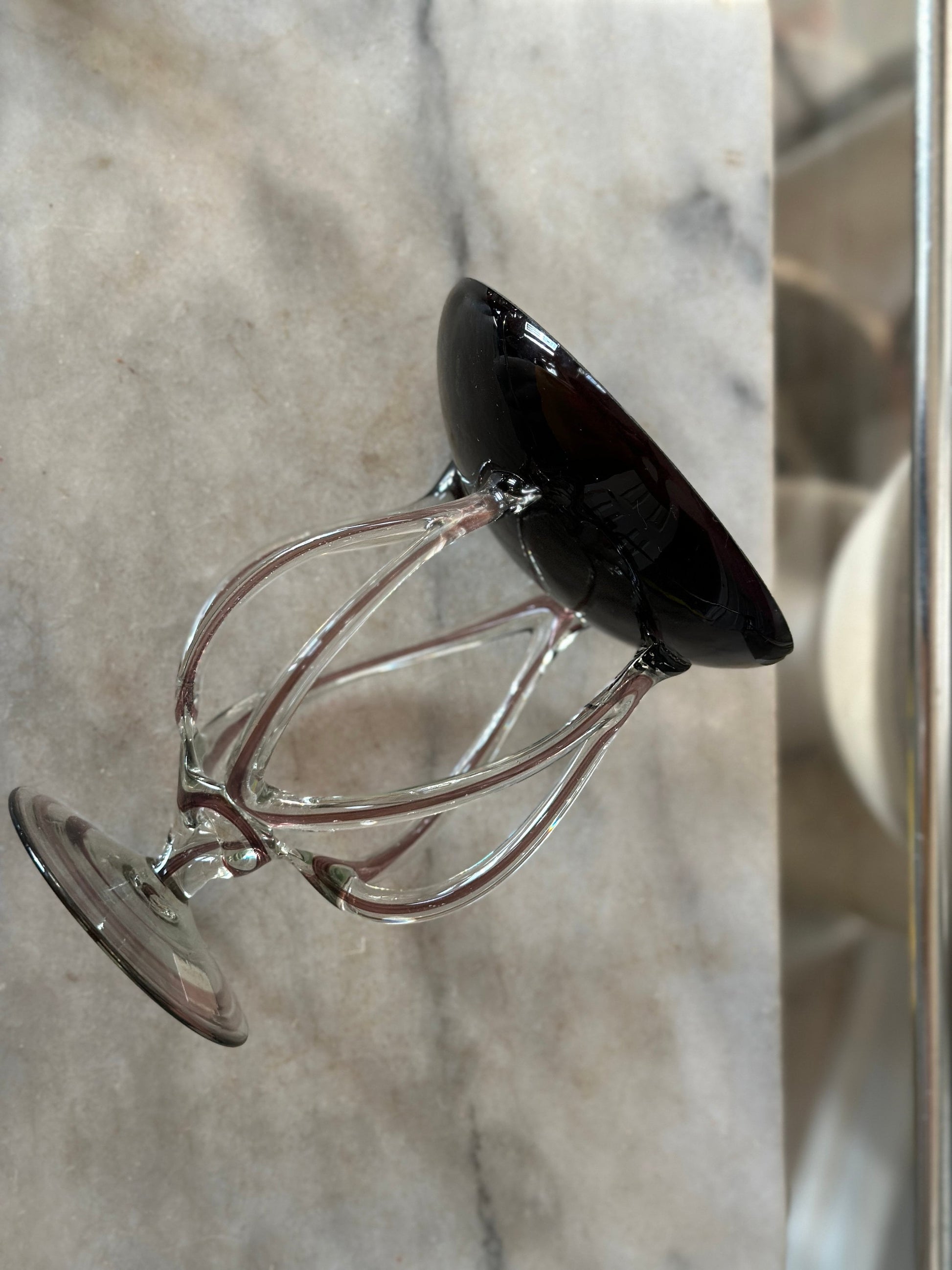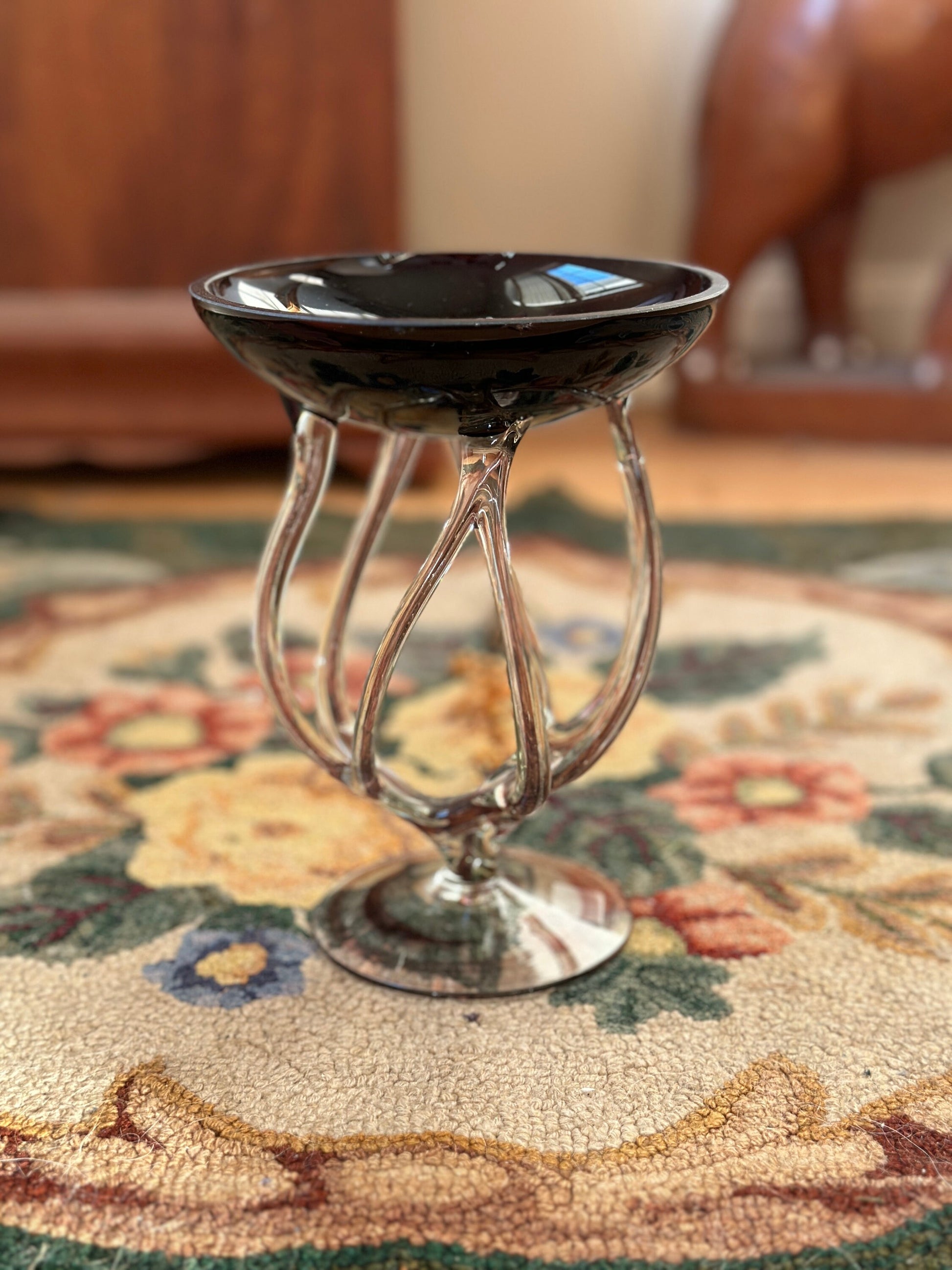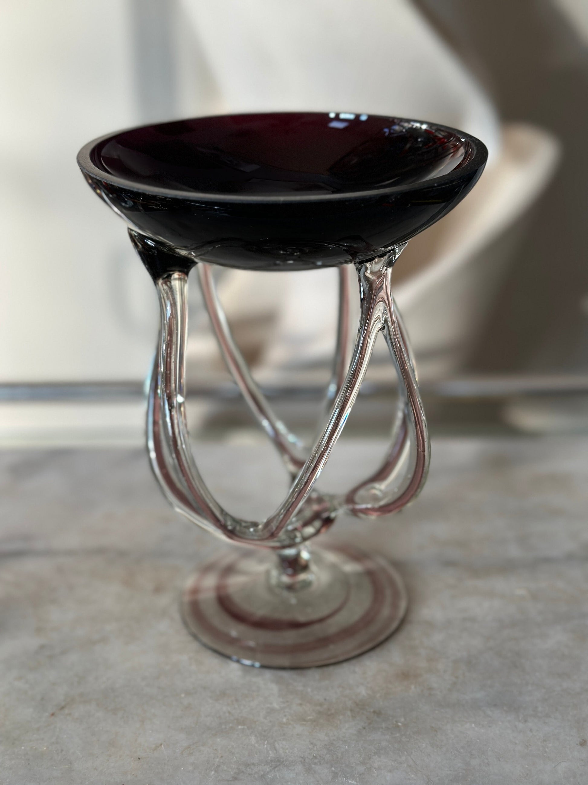 Vintage POLAND Handmade ARABESKA, PURPLE Art Glass Sculpture Octopus Jellyfish Bowl Vase