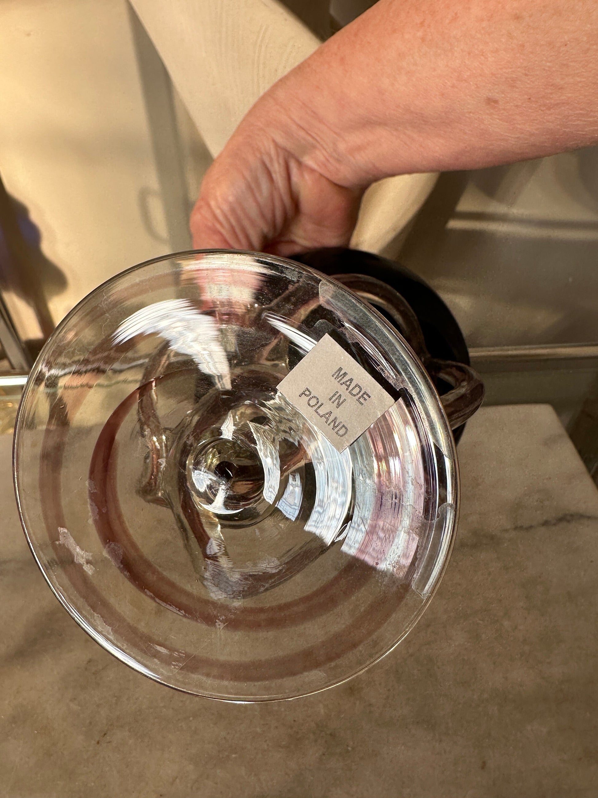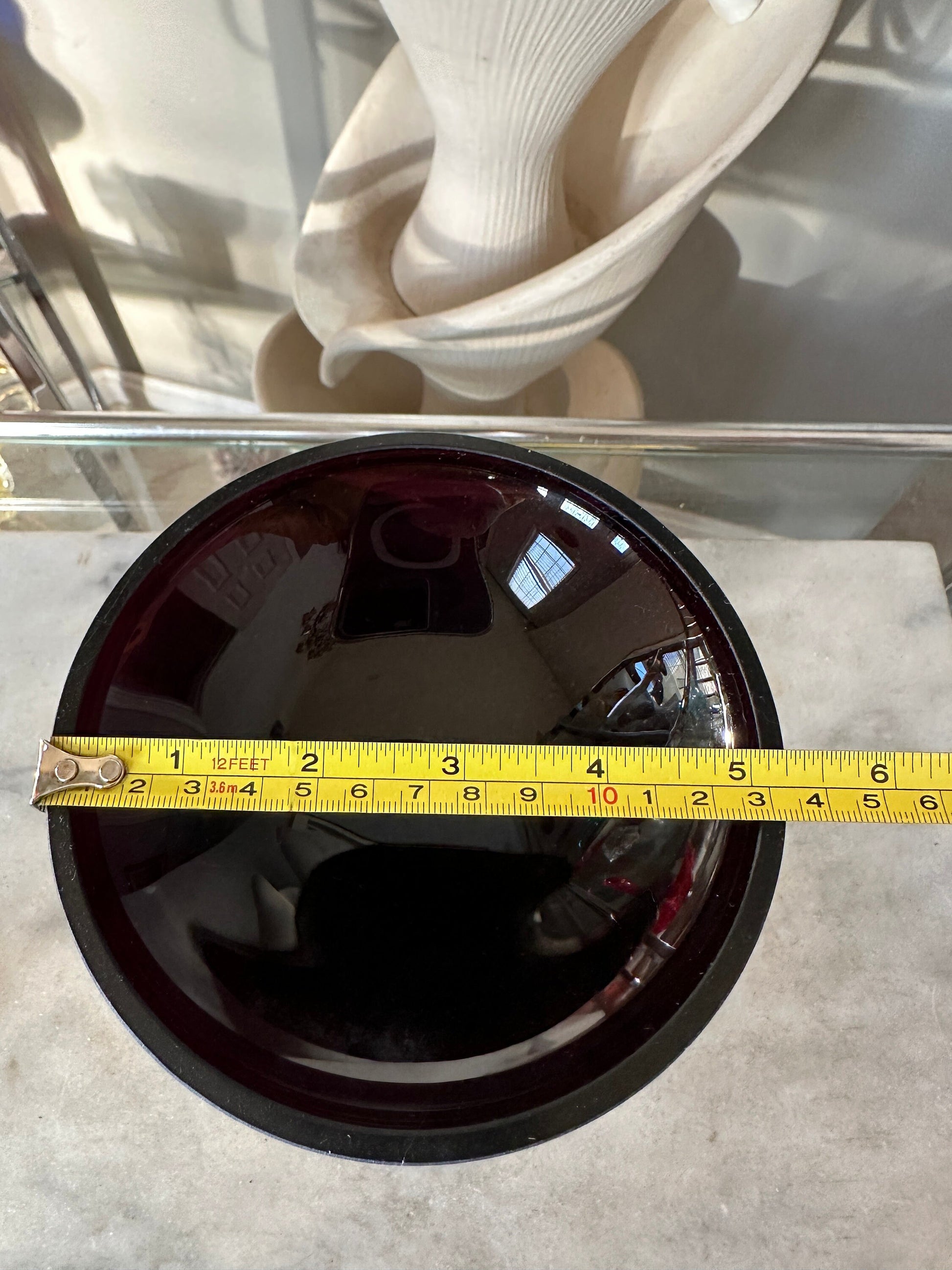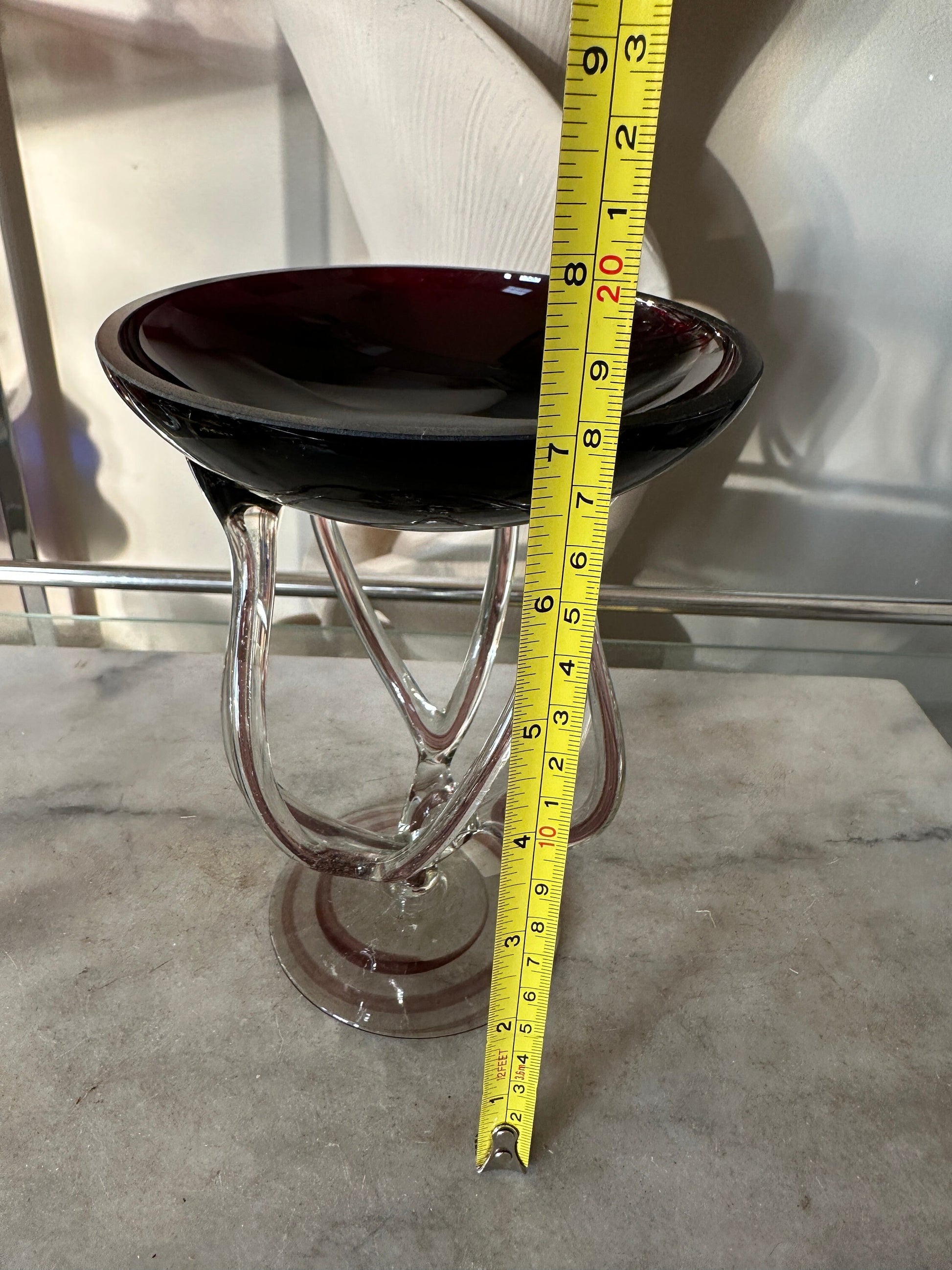 A gorgeous amethyst purlple and clear Jellyfish art glass bowl - Made jn Poland. Our research indicates that this by JOZEFINA Art Factory located in Krosno Poland, although the Josefina sticker is not present t (the Made in Poland sticker is present.)Features a unique design in amethyst and clear glass. CONDITION: Very good vintage condition with minimal wear and tear. No chips, cracks, or structural damage. Aside from a light dusting any detailed cleaning is left to the discretion of the buyer.DIMENSIONS: approx. 10" tall x 6" diameter (toA wonderful addition to an art glass collection. Shines beautifully in the light.