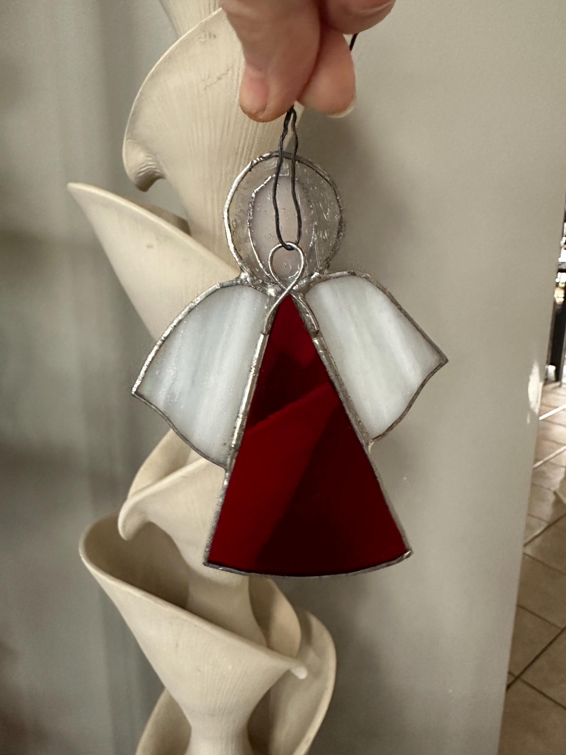Timeless Holiday DecorAdd a touch of vintage charm to your Christmas décor with this beautiful set of three stained glass ornaments, featuring two angels and one candle. Each piece showcases classic holiday symbolism and richly colored glass that glows warmly when hung near lights or a window.Details