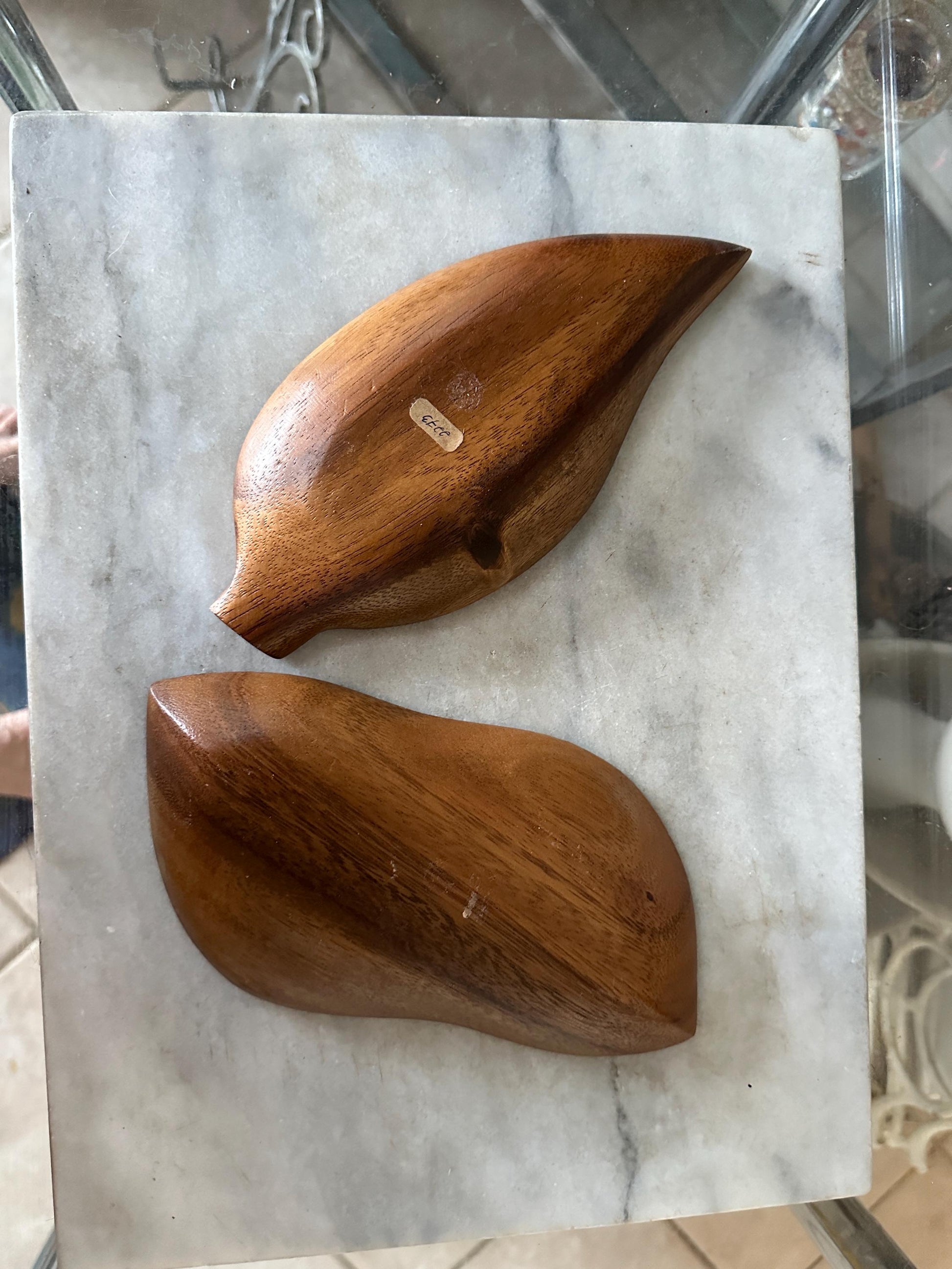 Made of teak wood – warm, rich grain Leaf-inspired shape – unique and stylish Please see photos for size approximations. Vintage Scandinavian / Danish Modern influence Estimated era: 1960s–1970sCondition: Very good vintage condition with minor wear consistent with age. Light surface marks add to their character. Cleaned and ready to use or display.Styling Tips: These MCM teak bowls add warmth and retro charm to any space. Use them as snack bowls for a cozy gathering or as a minimalist decorative accent for your modern home.