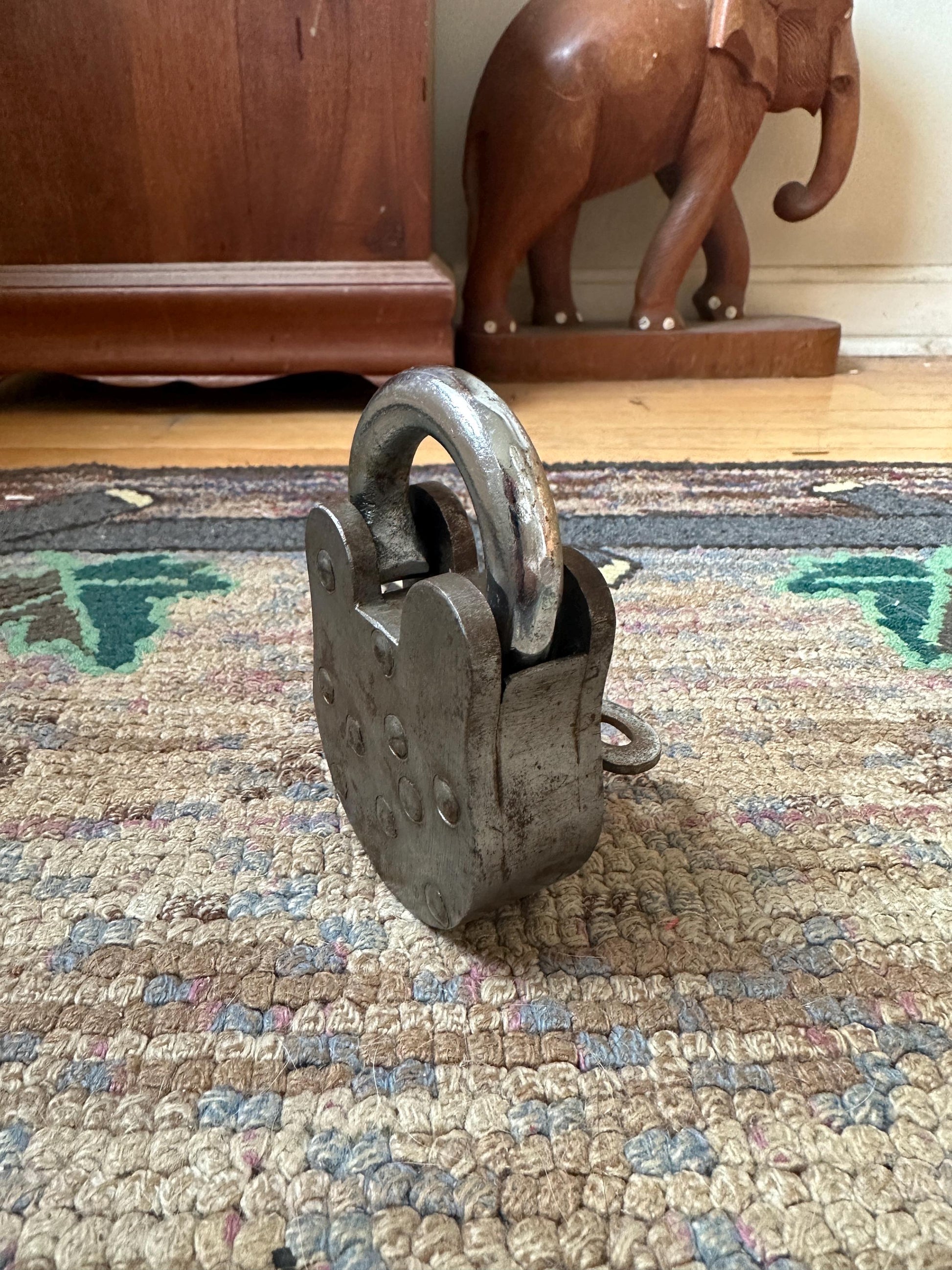 Vintage Old Rare Trusty Double Locker Metal Made Tricky System Padlock With Key.This is very rare original Vintage Old Rare Trusty Double Locker Metal Made Tricky System Padlock With Key in Good condition! This Vintage Old Rare Trusty Double Locker Metal Made Tricky System Padlock With Key is ready and to be part of your collection.Origin :- India See Photos for actual condition.