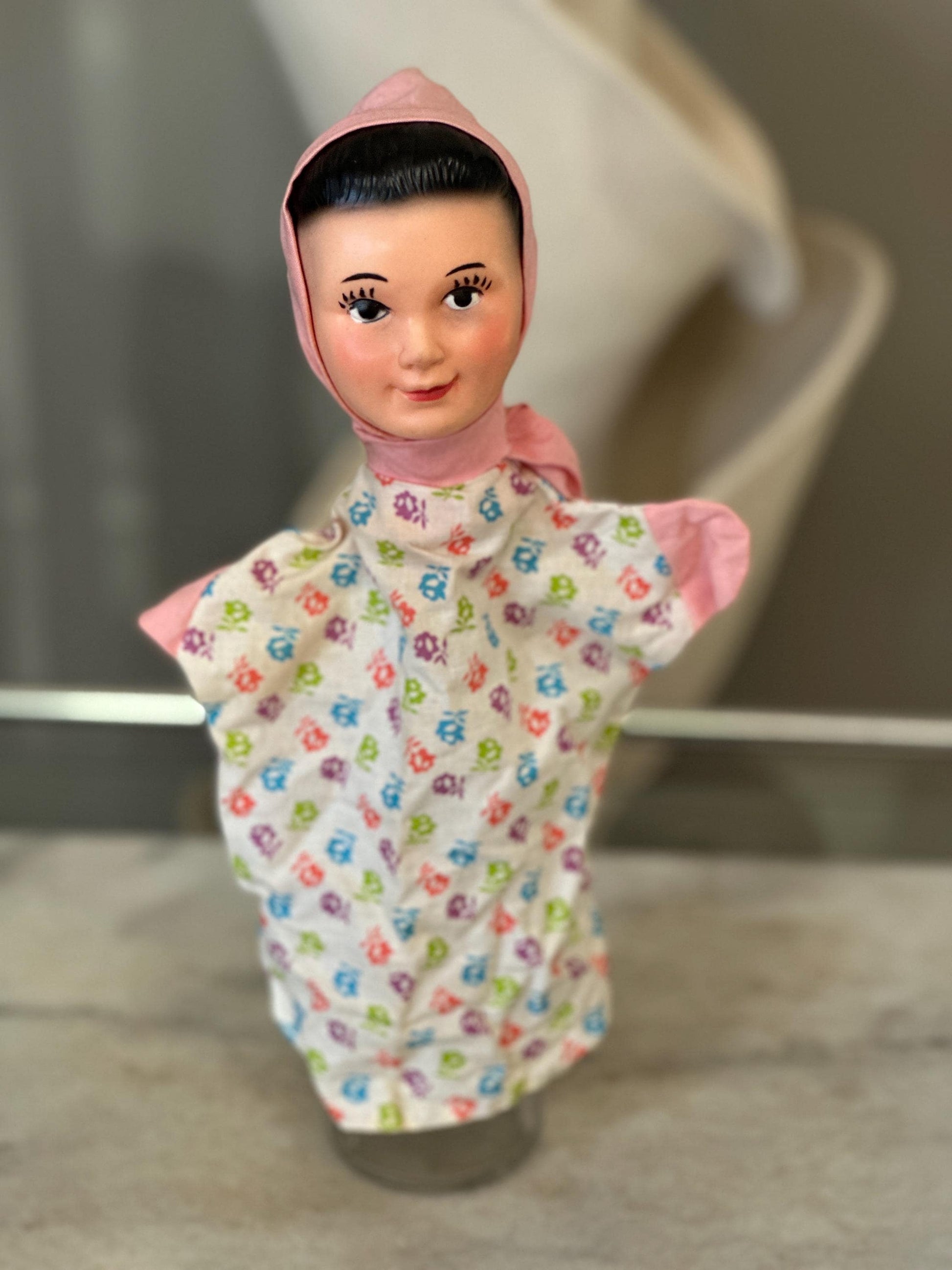 Vintage Unbranded Character Cloth Costumed & Rubber Head Hand Puppets - Set of 4Wonderfully detailed faces and colorful fabric on their suits.Please see photos for size approximations.Perfect to use as intended desk or to display.Good vintage condition - no rips on clothing or cracks on rubber. Fabric needs to be pressed.