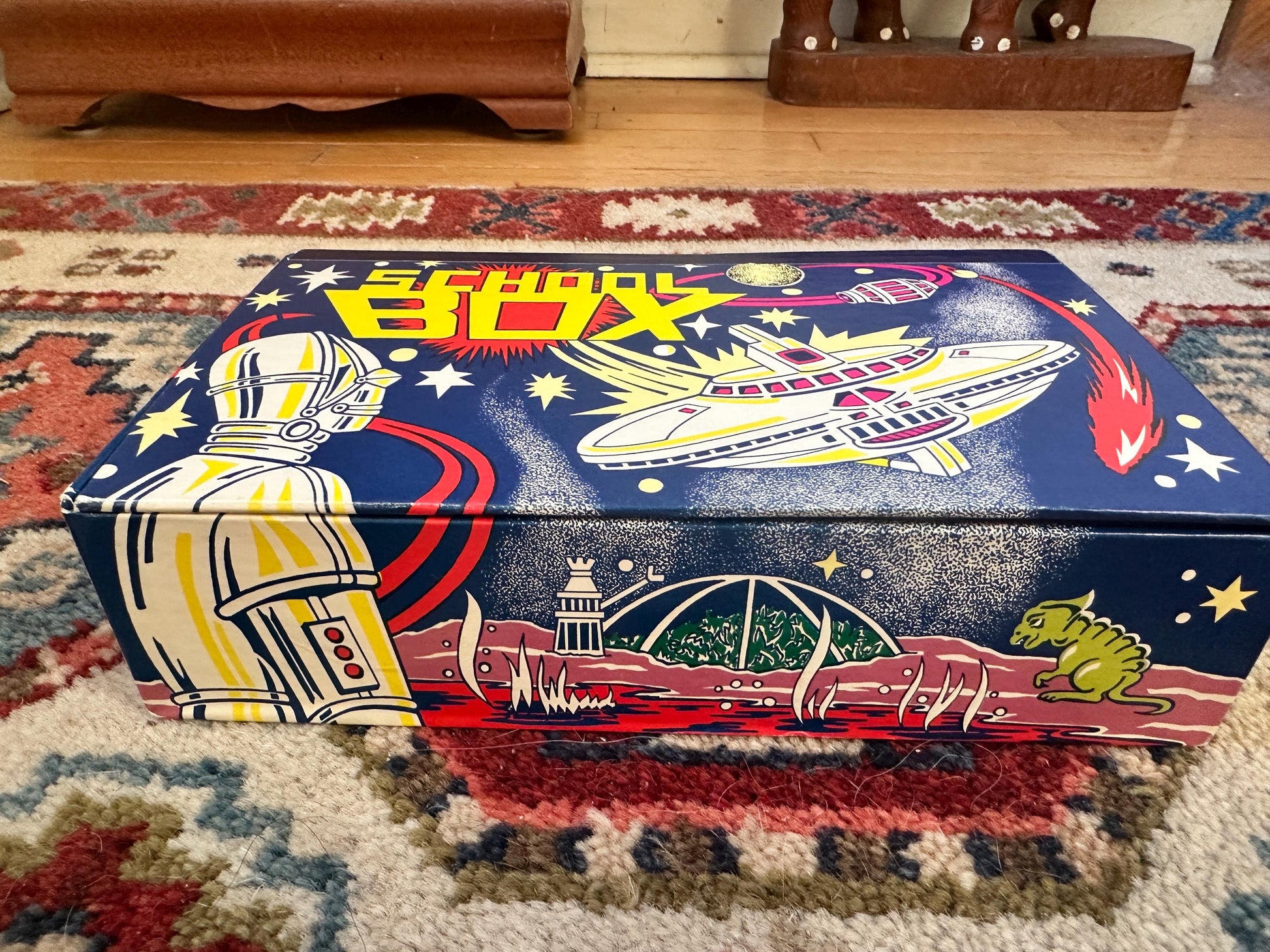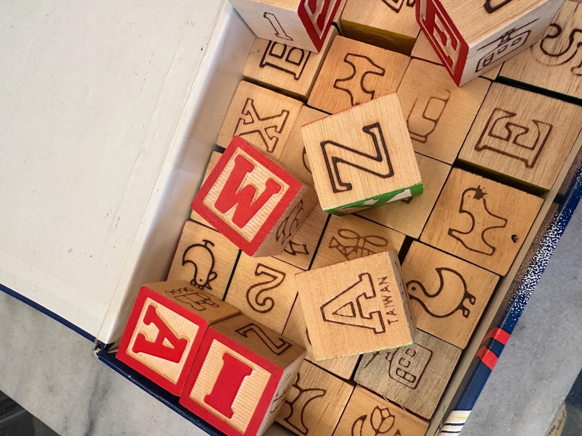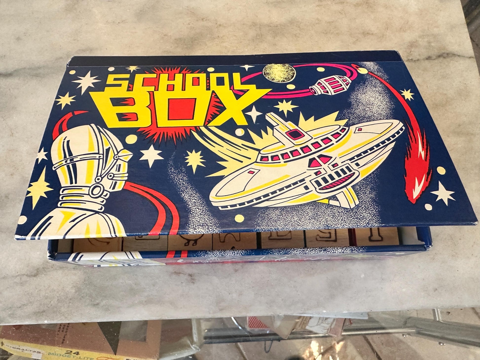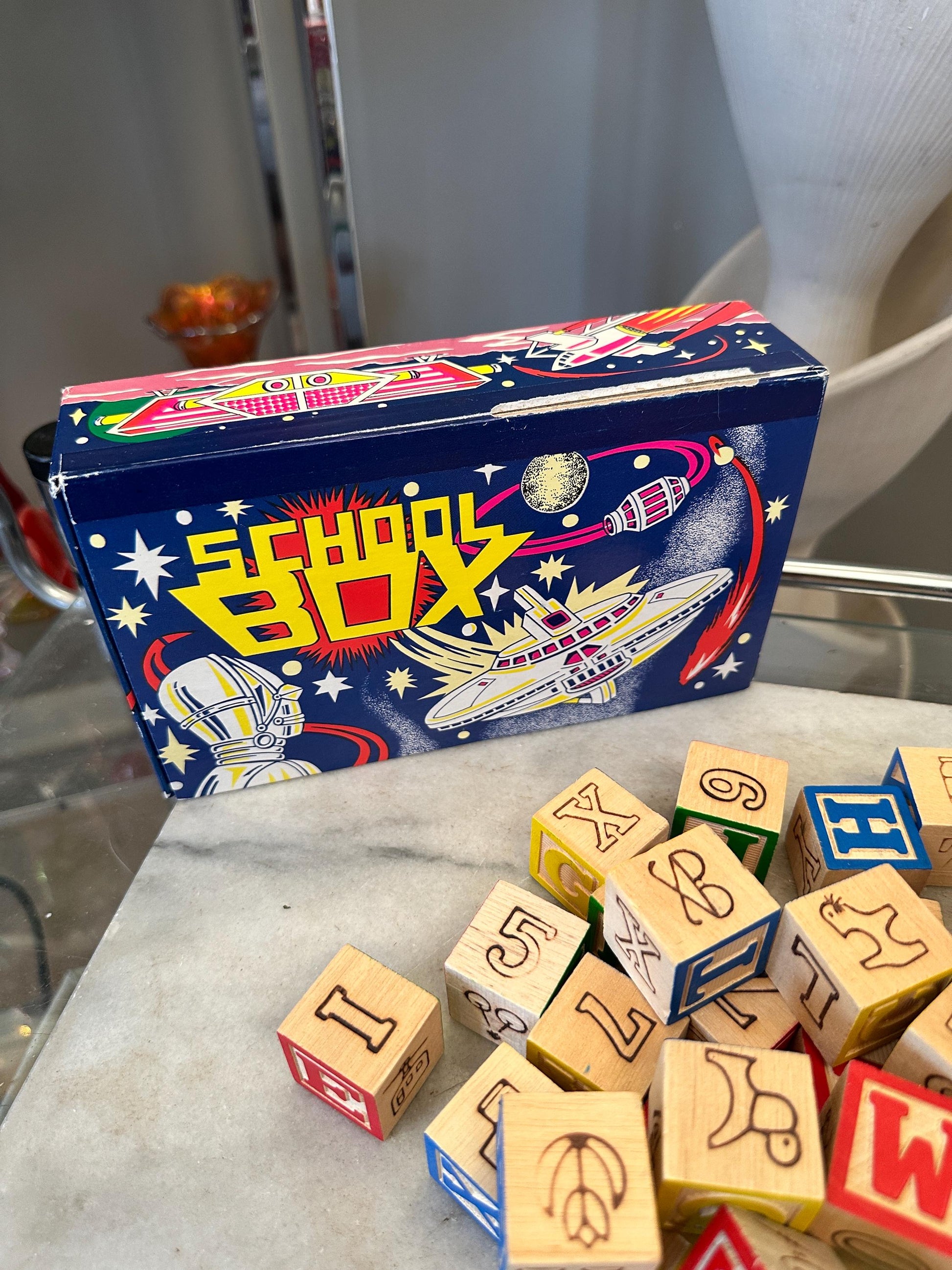 Vintage Wood 1 Inch Letter Blocks (Set of 34) in Vintage Space School Box