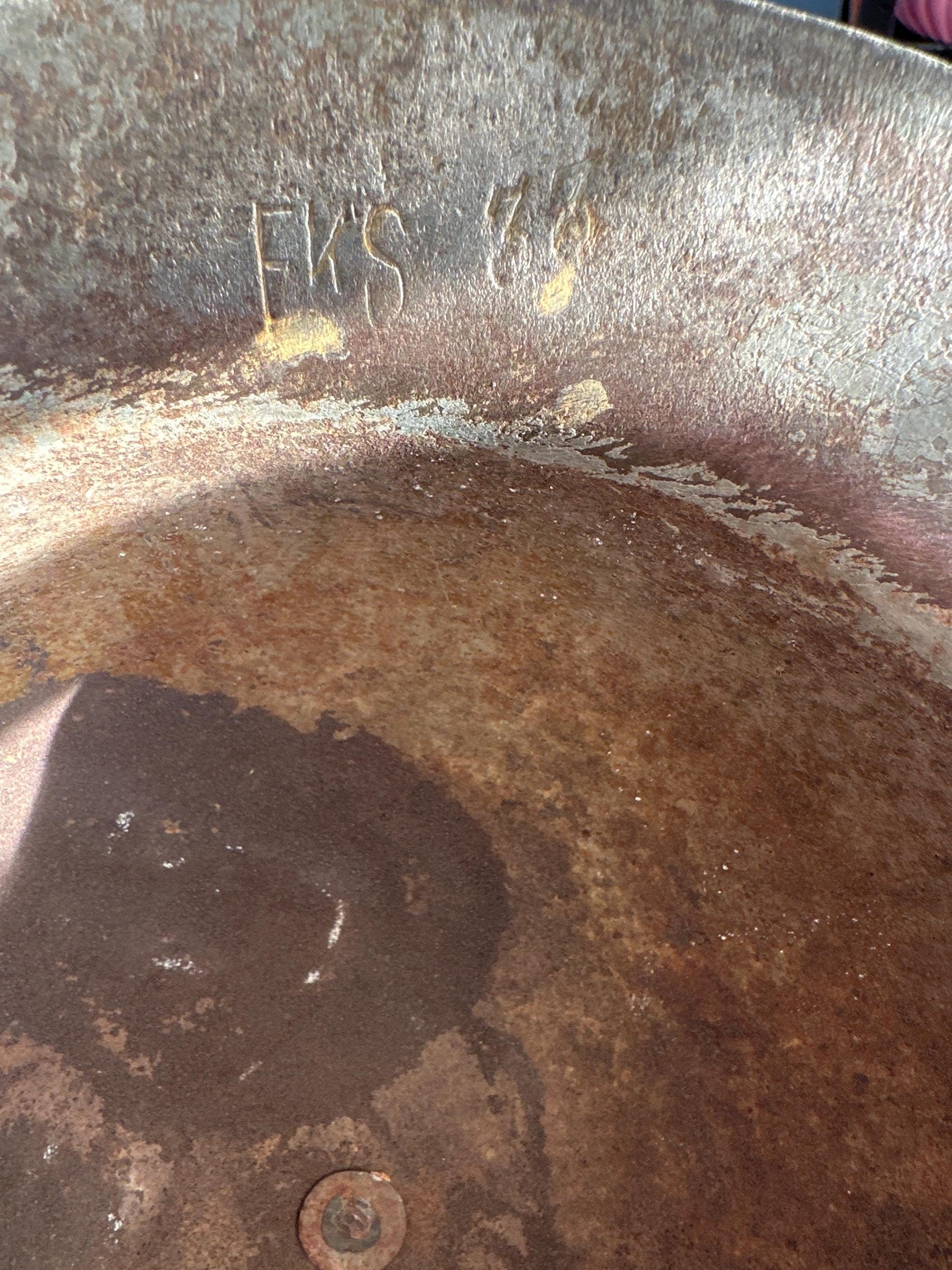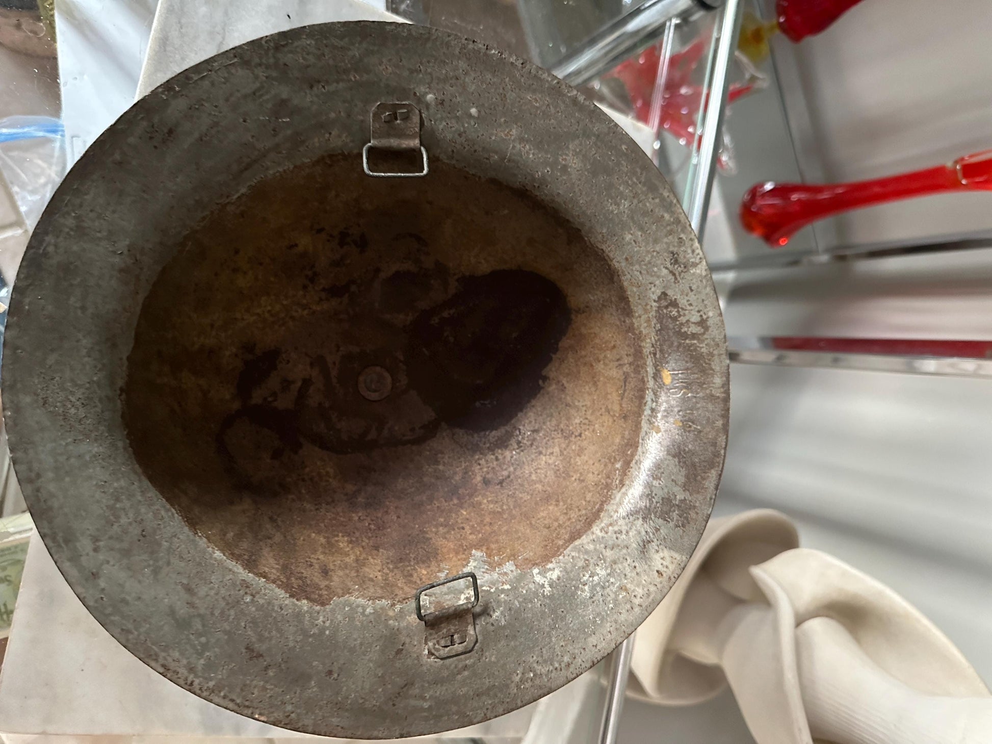 WWI British M1917 Steel Helmet Numbered FKS -37Up for sale is this original WW1 Painted Doughboy Helmet. Hand painted white oval on the top of the helmet.Stamped with what looks to be FKS37. Very good condition for being over 100 years old.Helmet was designed and made in Britain by John Brodie around 1915. Unfortunately this helmet is missing the liner and the leather chin strap.Typical dents and handling marks - chin strap is not present. Please view pictures for quality and condition.